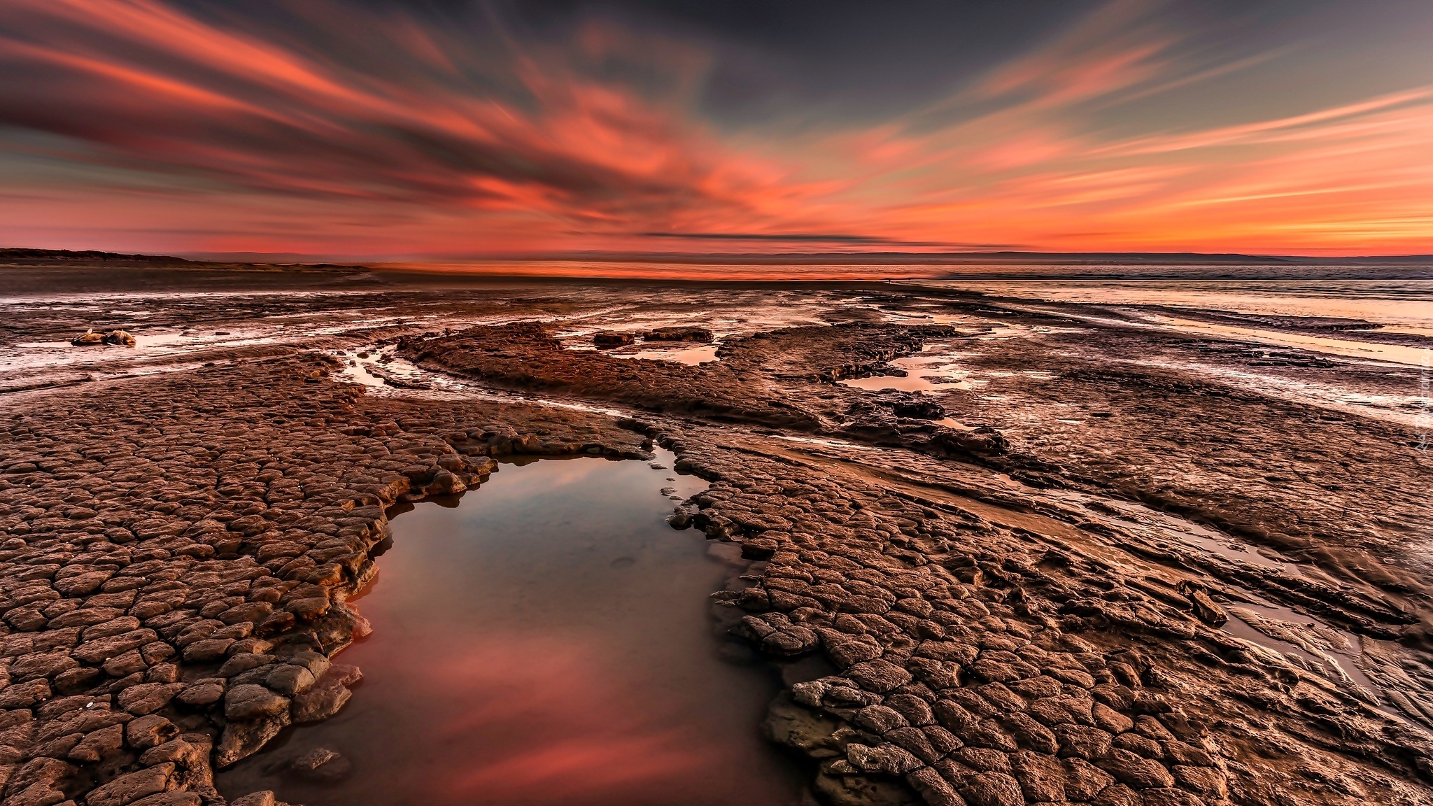 Edytor tapety: Kamieniste morskie wybrzeże w zachodzącym słońcu
