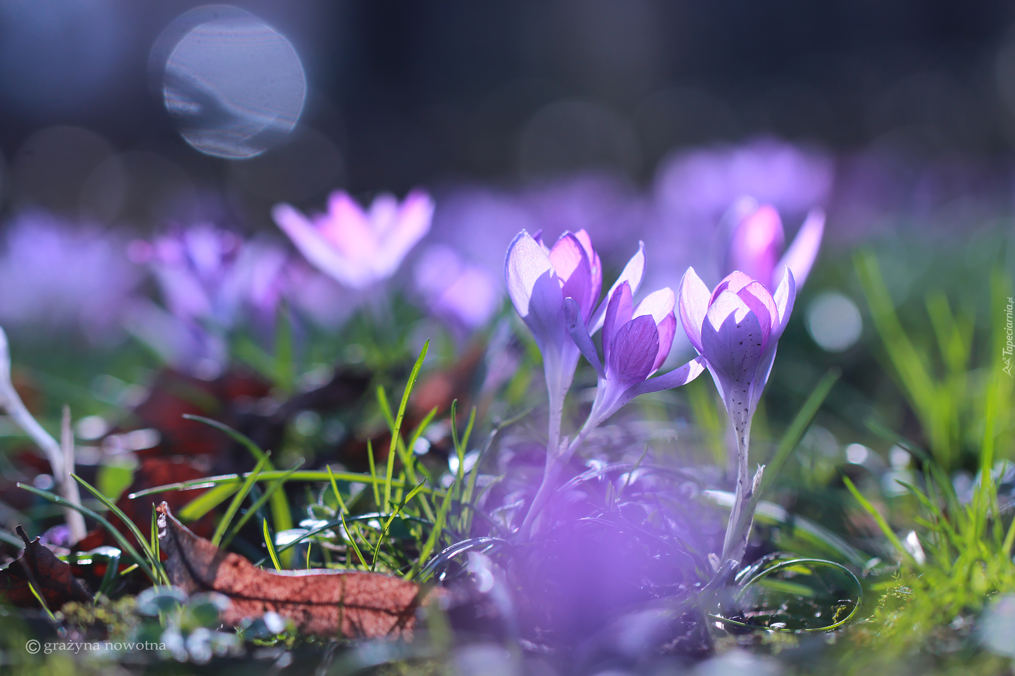 Edytor tapety: Fioletowe krokusy w blasku słońca