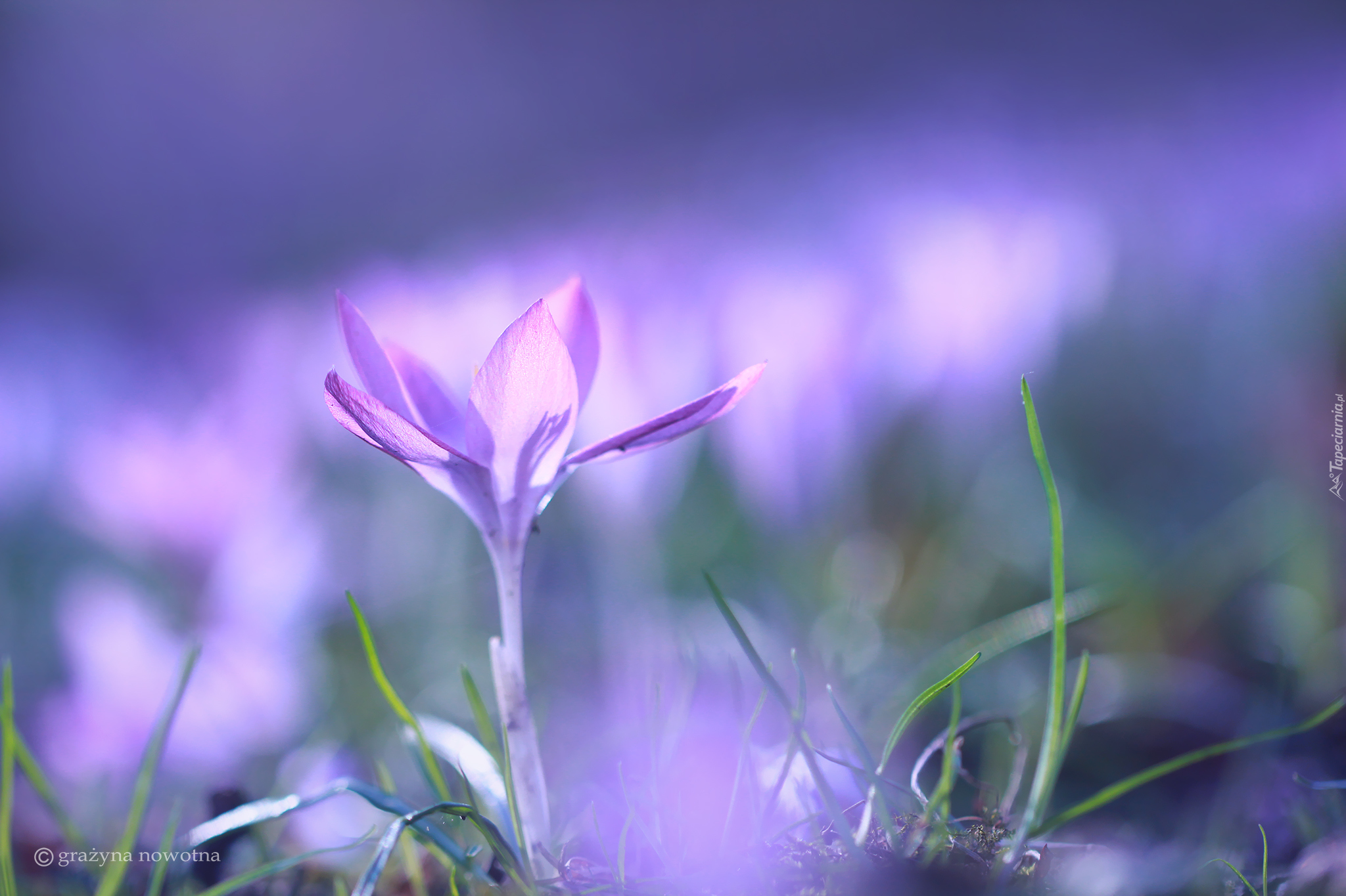 Edytor tapety: Fioletowy krokus w blasku słońca