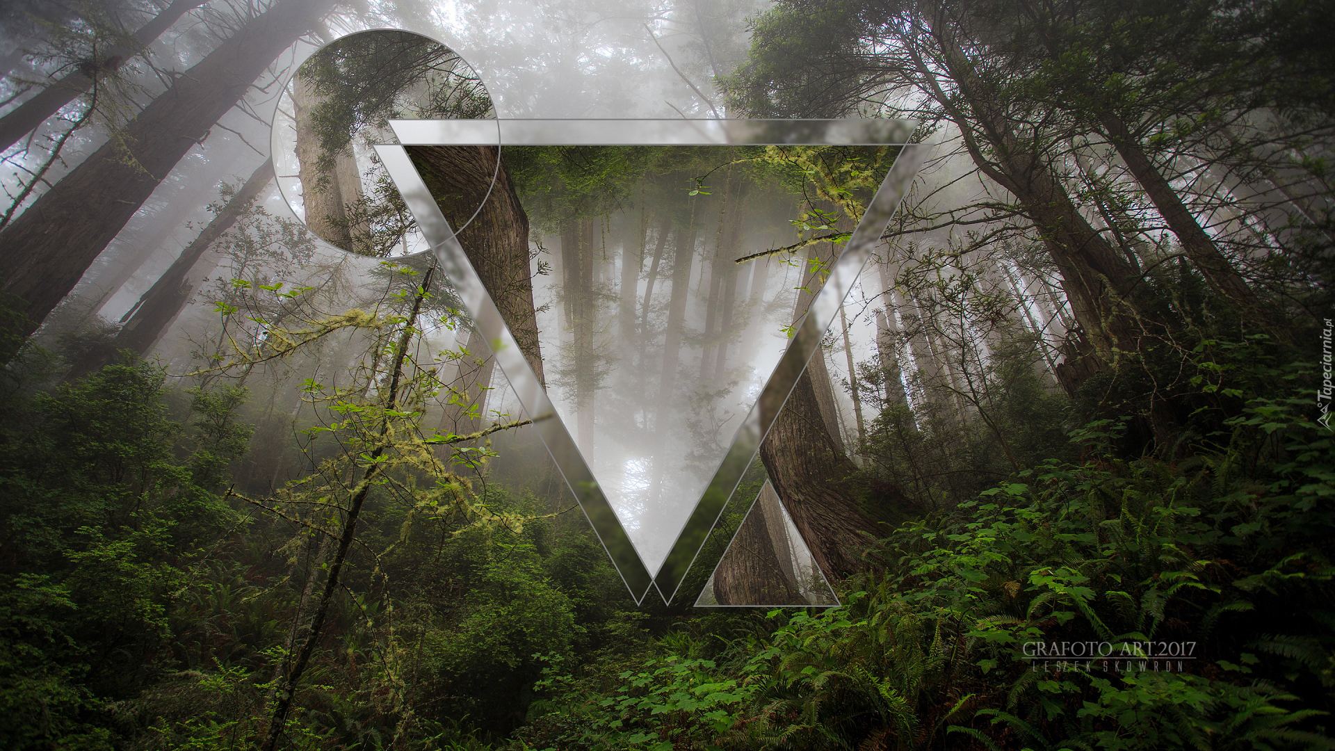 Edytor tapety: Zamglony las w grafice 3D