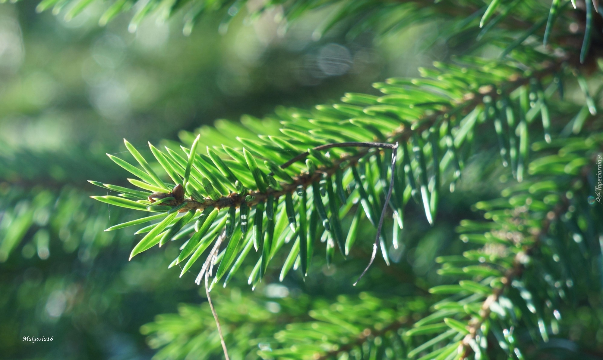 Edytor tapety: Zielona gałązka świerku w rozmyciu