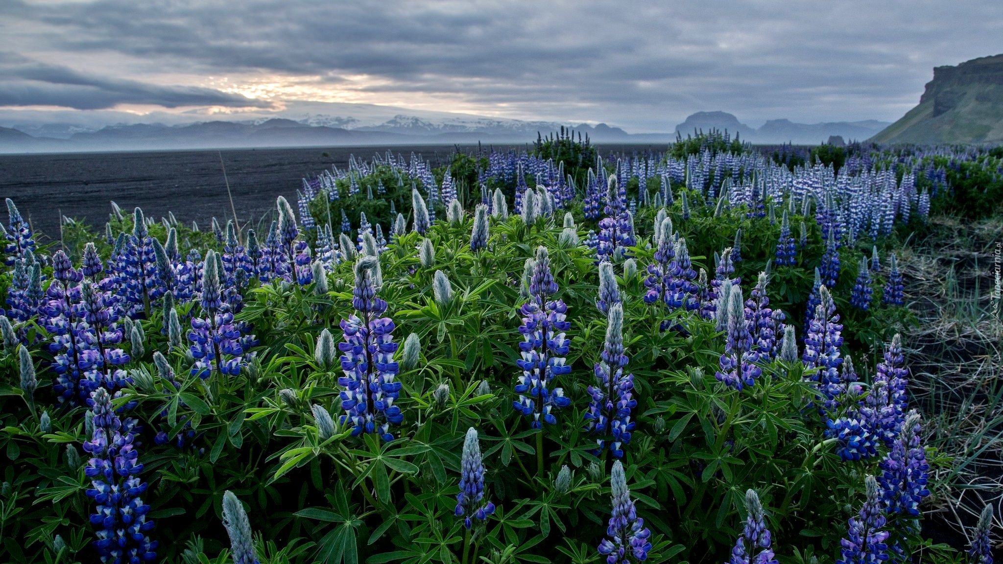 Edytor tapety: Łubin porastający brzeg jeziora