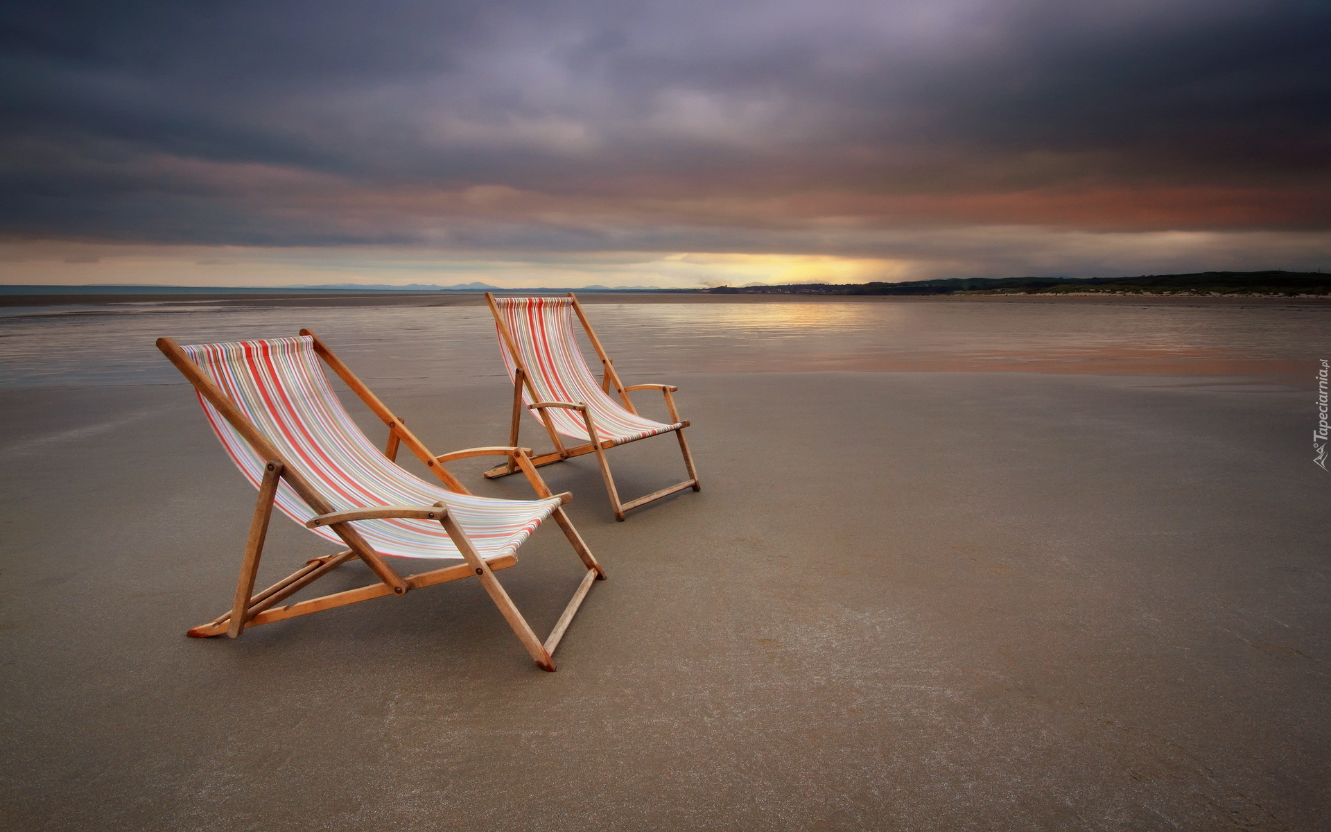 Edytor tapety: Leżaki na morskiej plaży