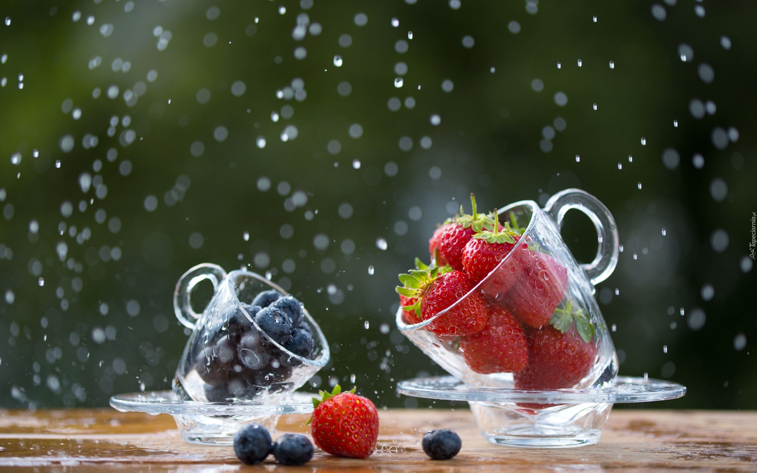 Edytor tapety: Truskawki i borówki w szklanych filiżankach