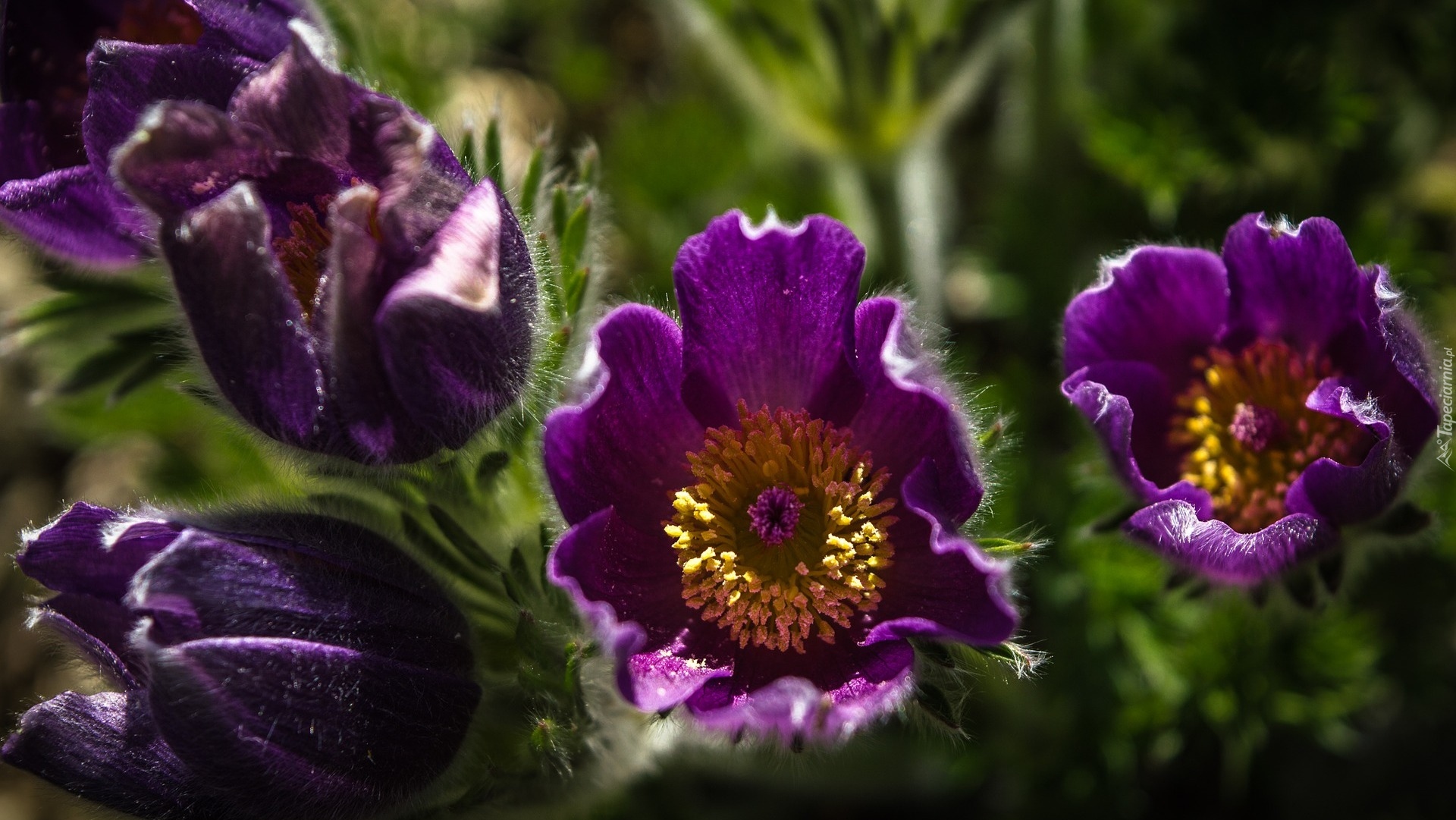 Edytor tapety: Fioletowe kwiaty sasanki