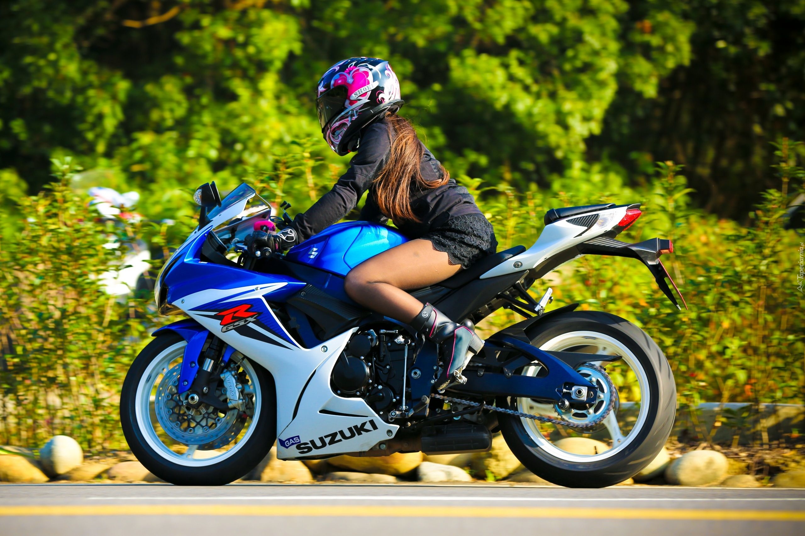 Edytor tapety: Dziewczyna na motocyklu Suzuki GSX-R Helmet