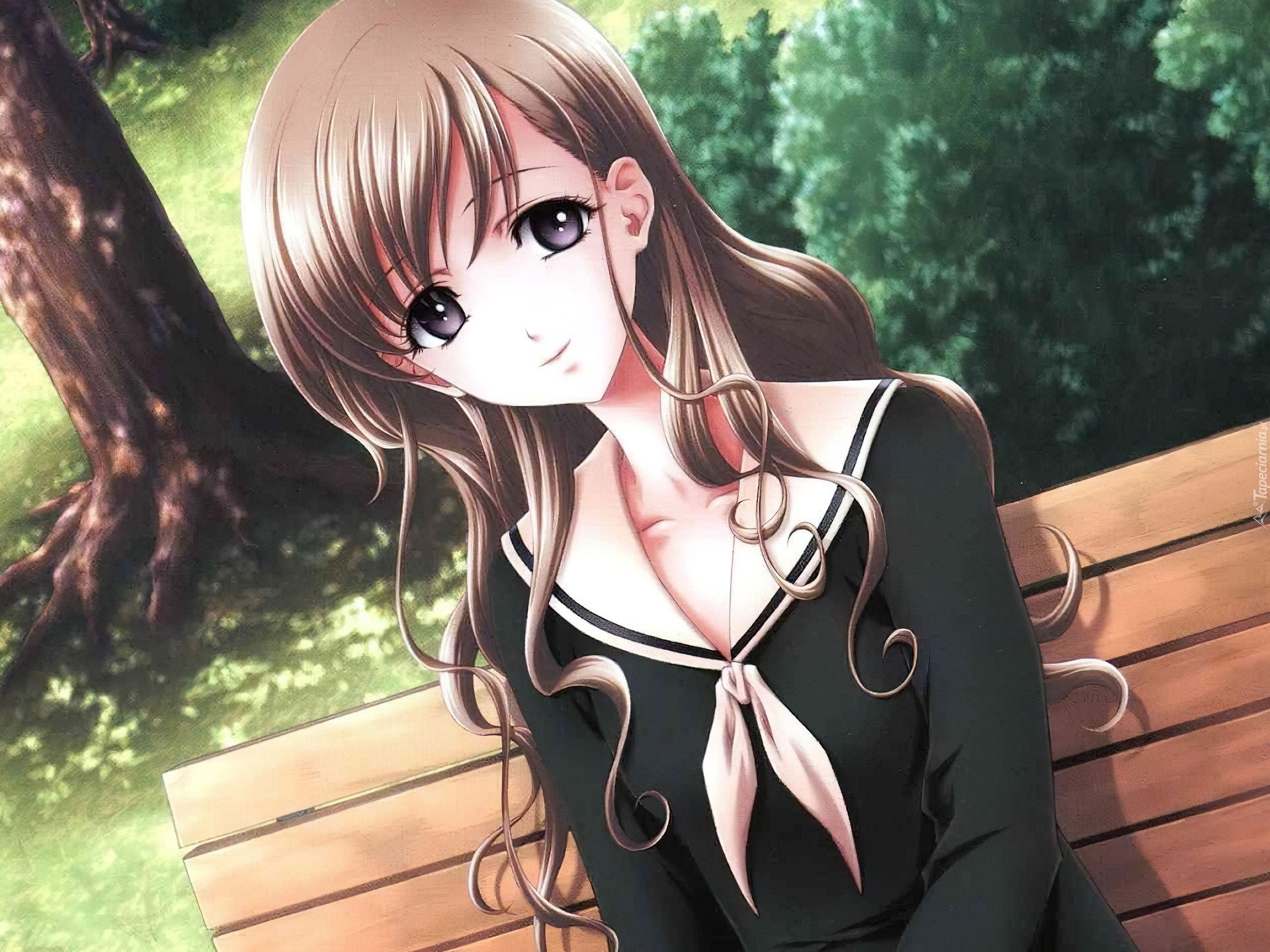 Edytor tapety: Maria - Sama Ga Miteru, ławka, dziewczyna