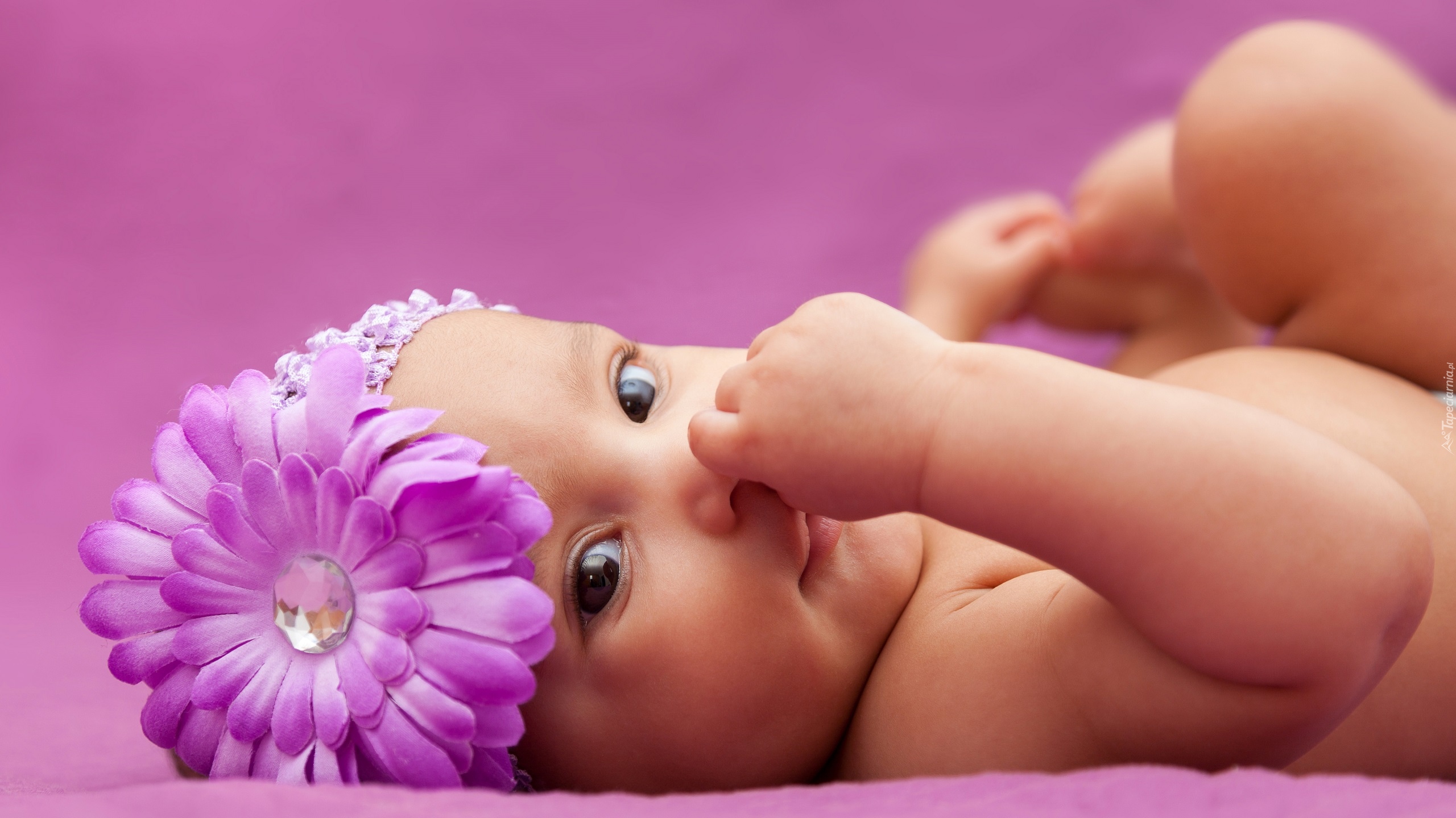 Edytor tapety: Leżące niemowlę w czapeczce z kwiatkiem