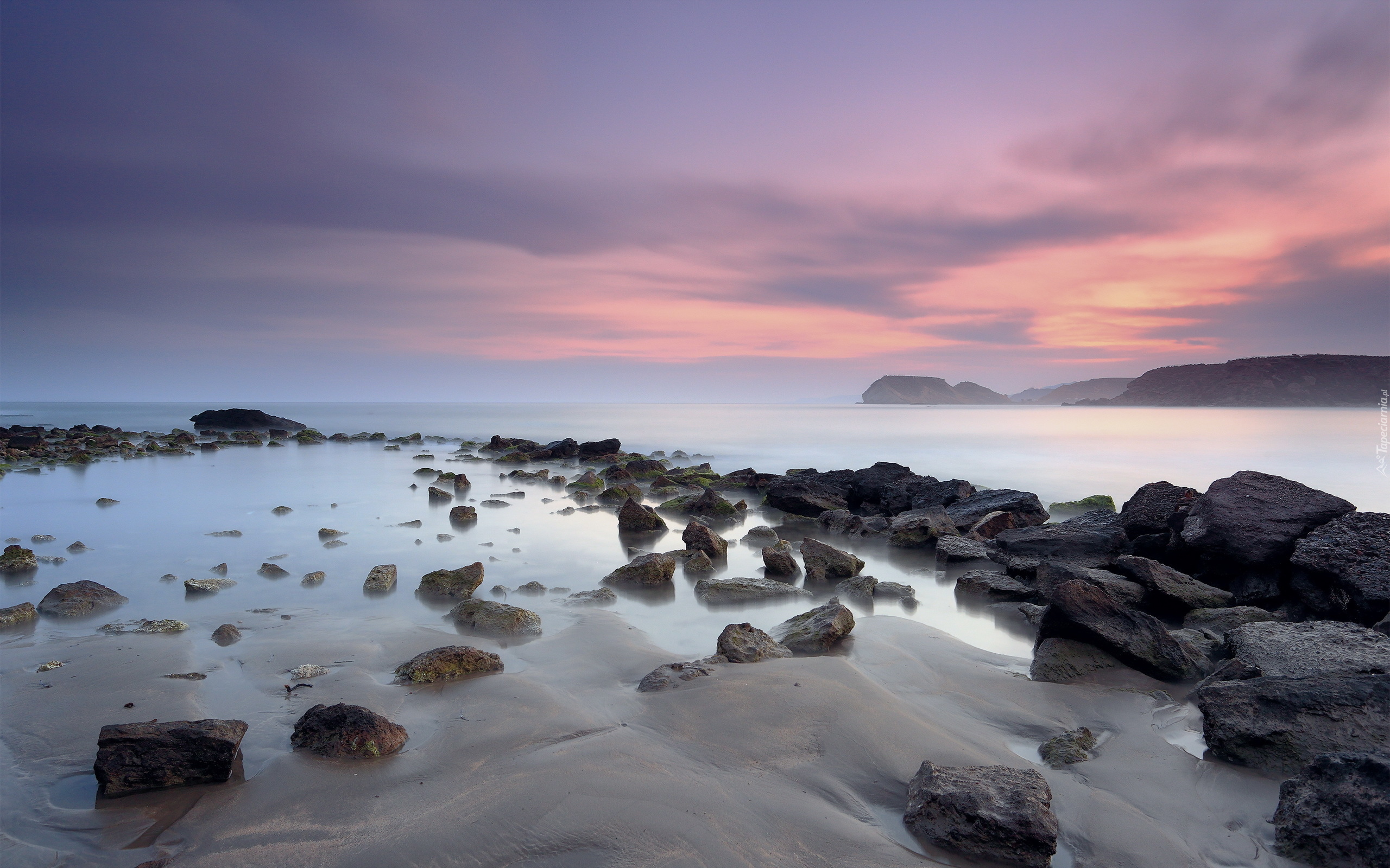 Edytor tapety: Kamienie na brzegu morza osnutego mgłą