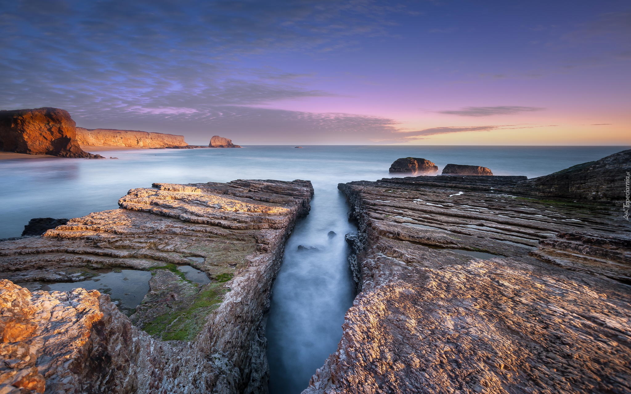 Edytor tapety: Skały ze stromym klifem na morzu