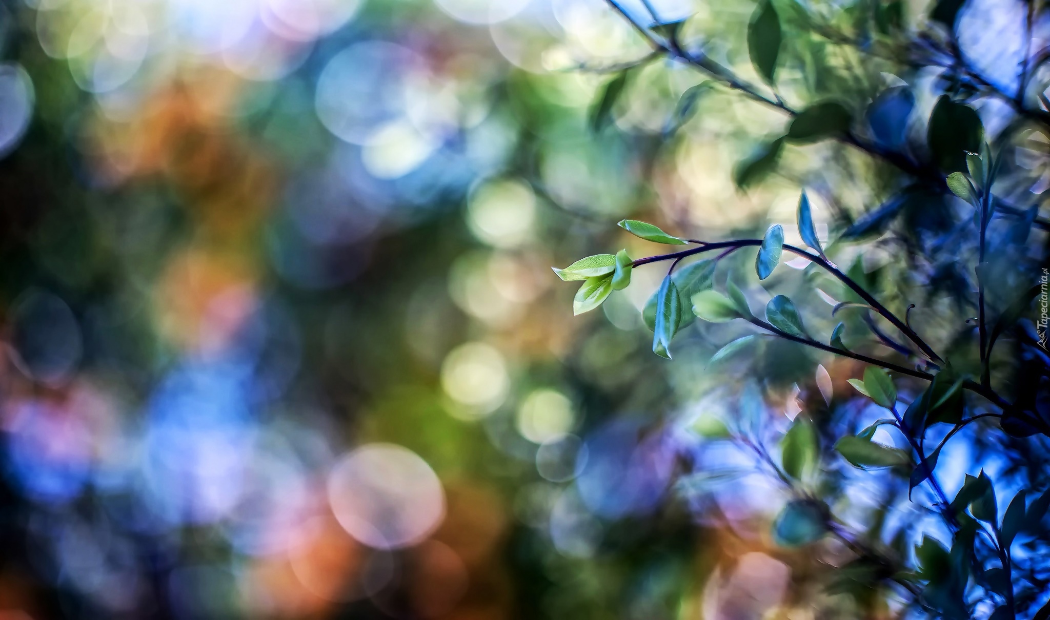 Edytor tapety: Rozświetlone gałązki na rozmytym tle