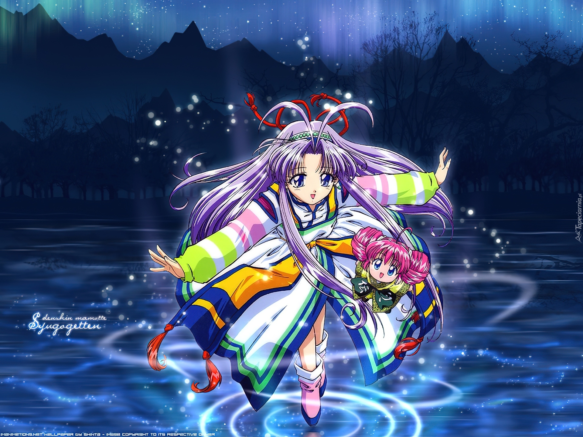 Edytor tapety: Mamotte Shugogetten, jezioro, dziewczyny, magia