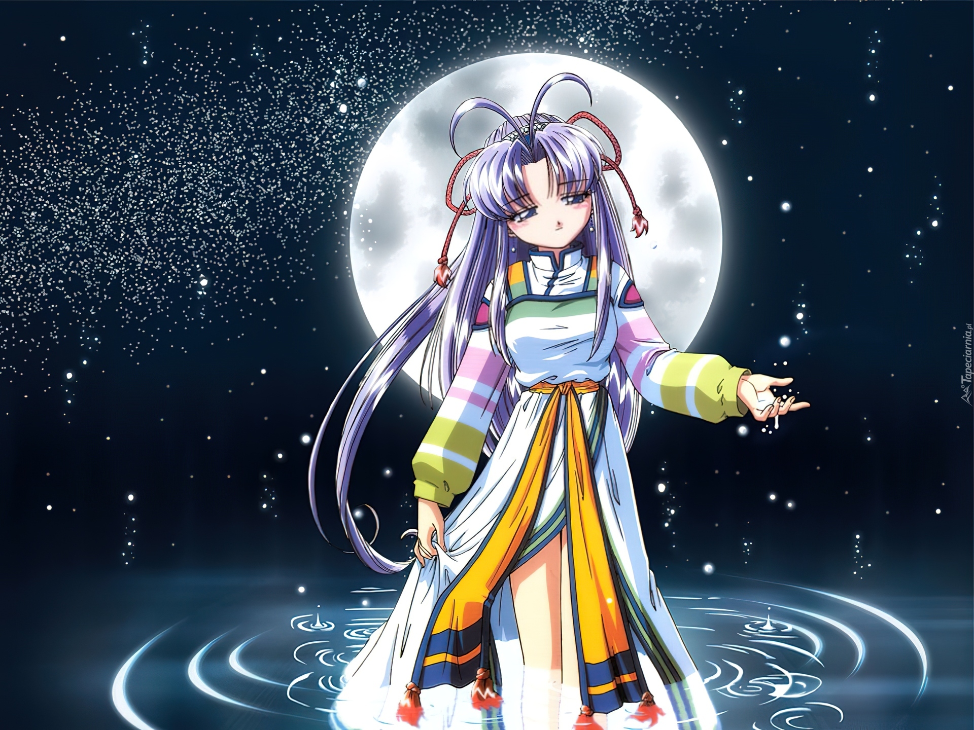 Edytor tapety: Mamotte Shugogetten, woda, kobieta, czary
