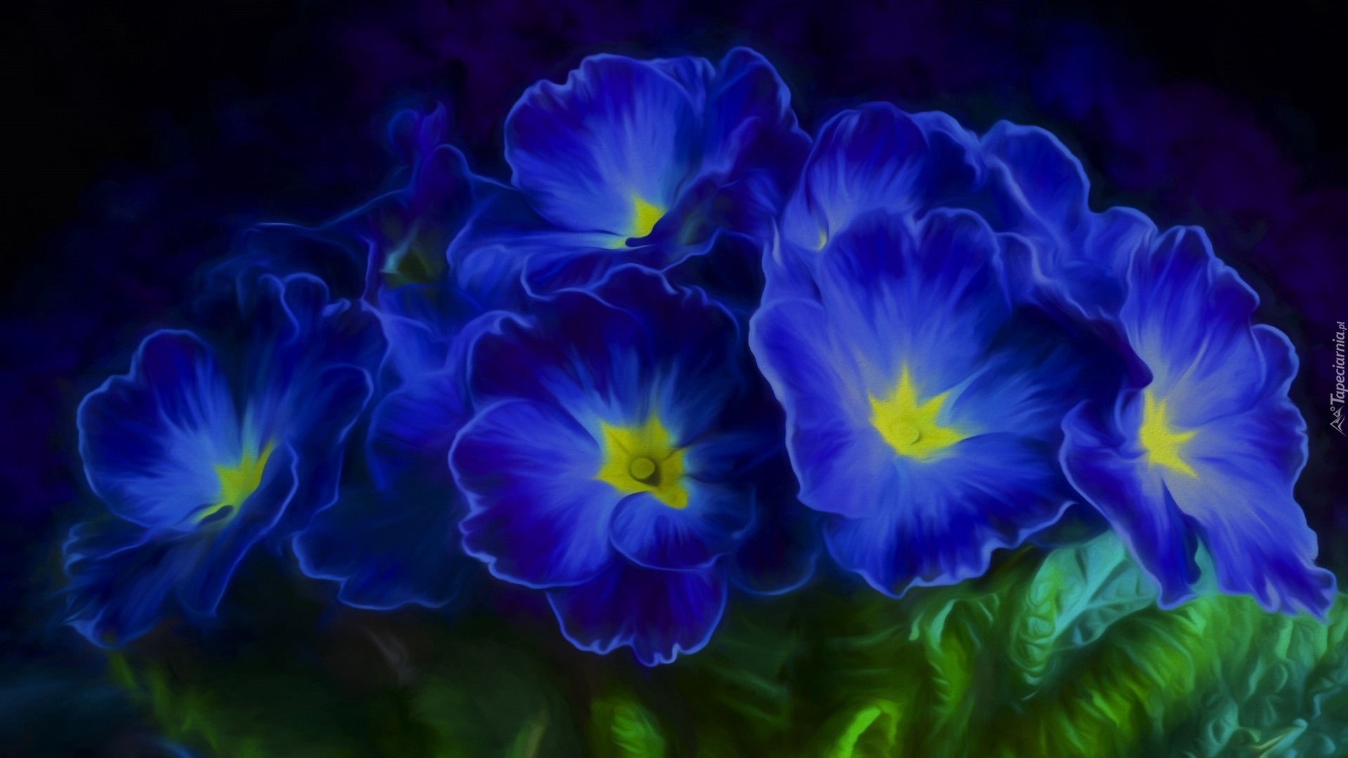 Edytor tapety: Niebieskie kwiaty prymuli w grafice 2D
