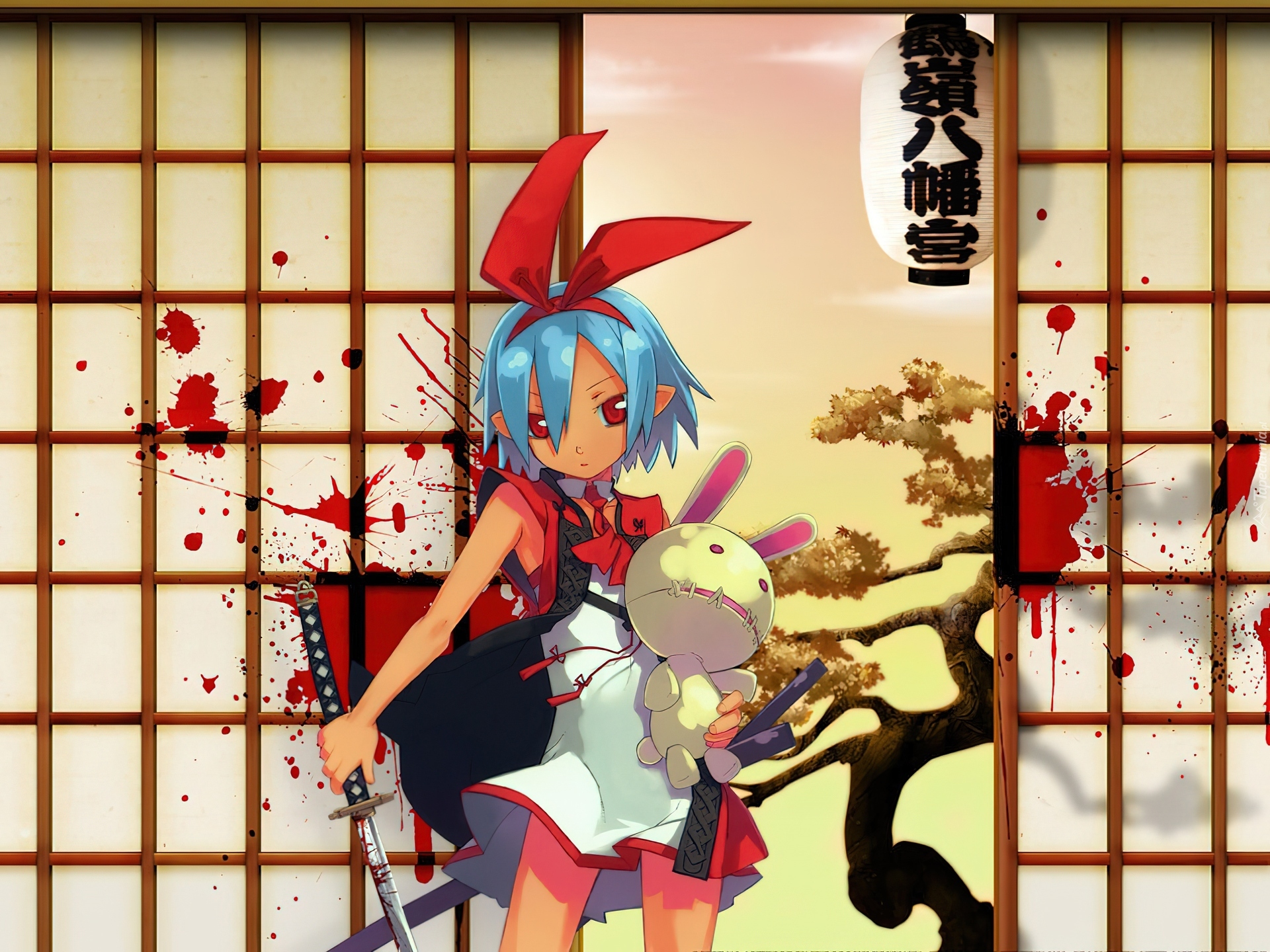 Edytor tapety: Makai Senki Disgaea, dziewczyna, krew, pluszak