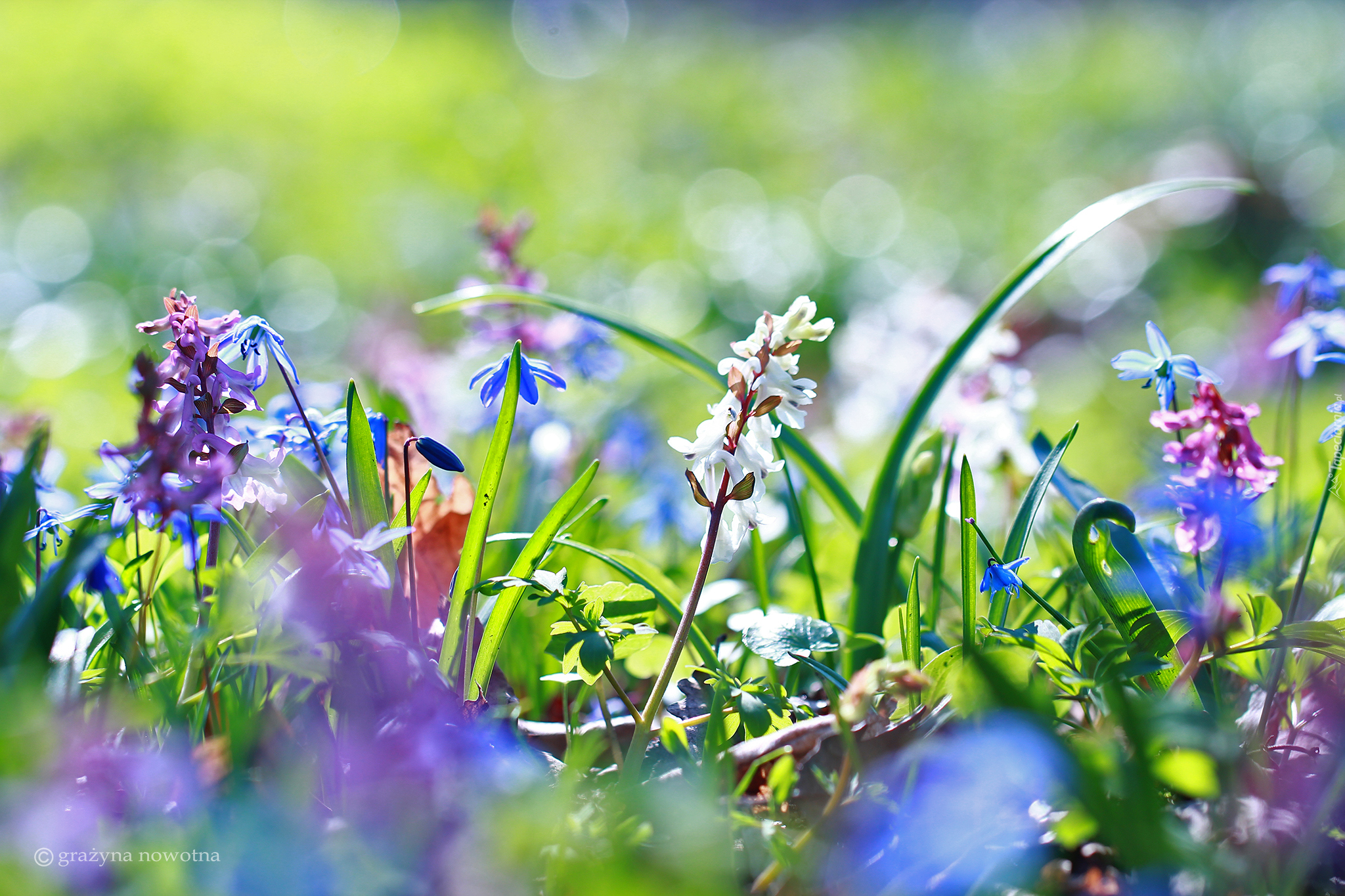 Edytor tapety: Kolorowe kwiaty i rośliny w wiosennym słońcu