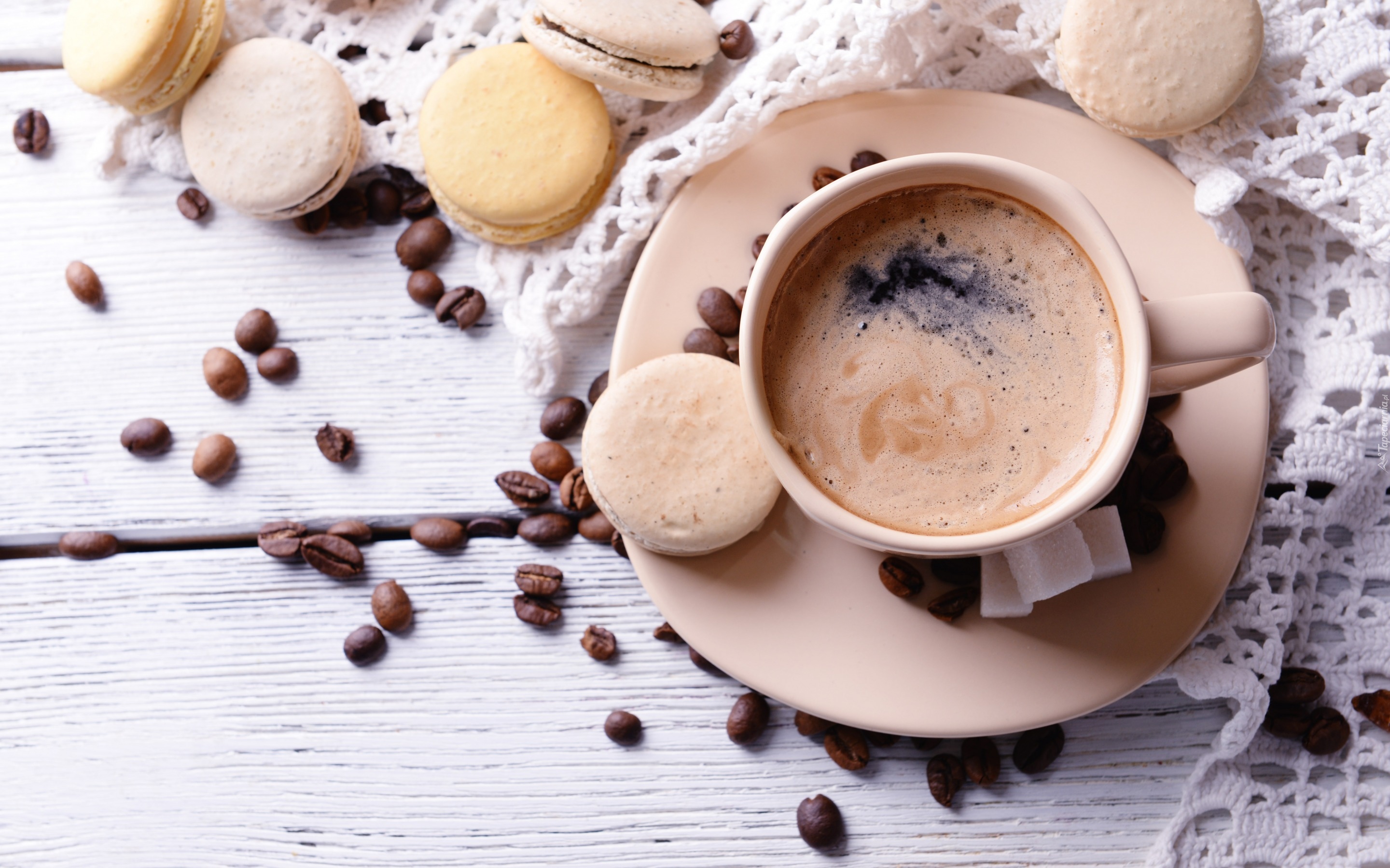 Edytor tapety: Filiżanka z kawą i ciasteczka na deser