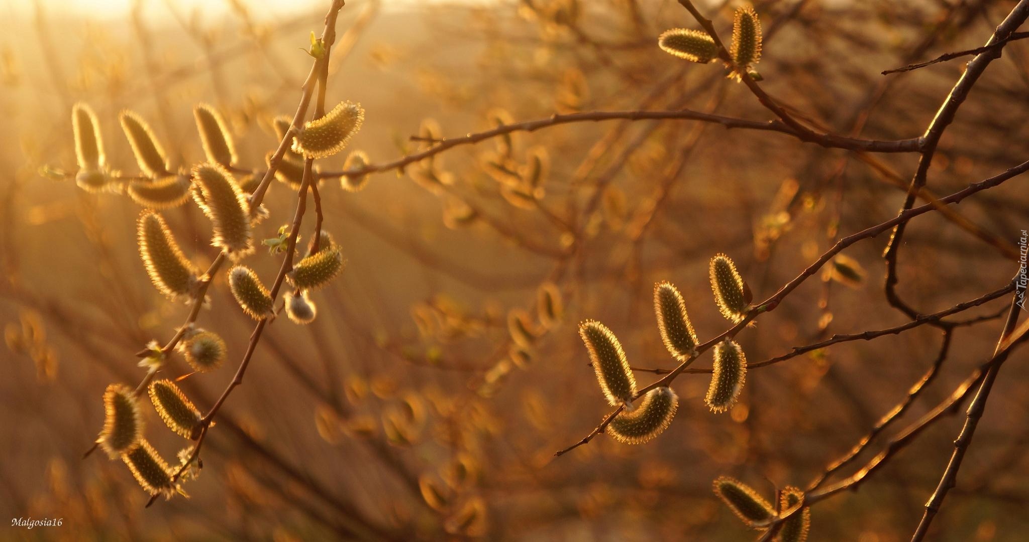 Edytor tapety: Bazie na gałęziach wierzby w słońcu