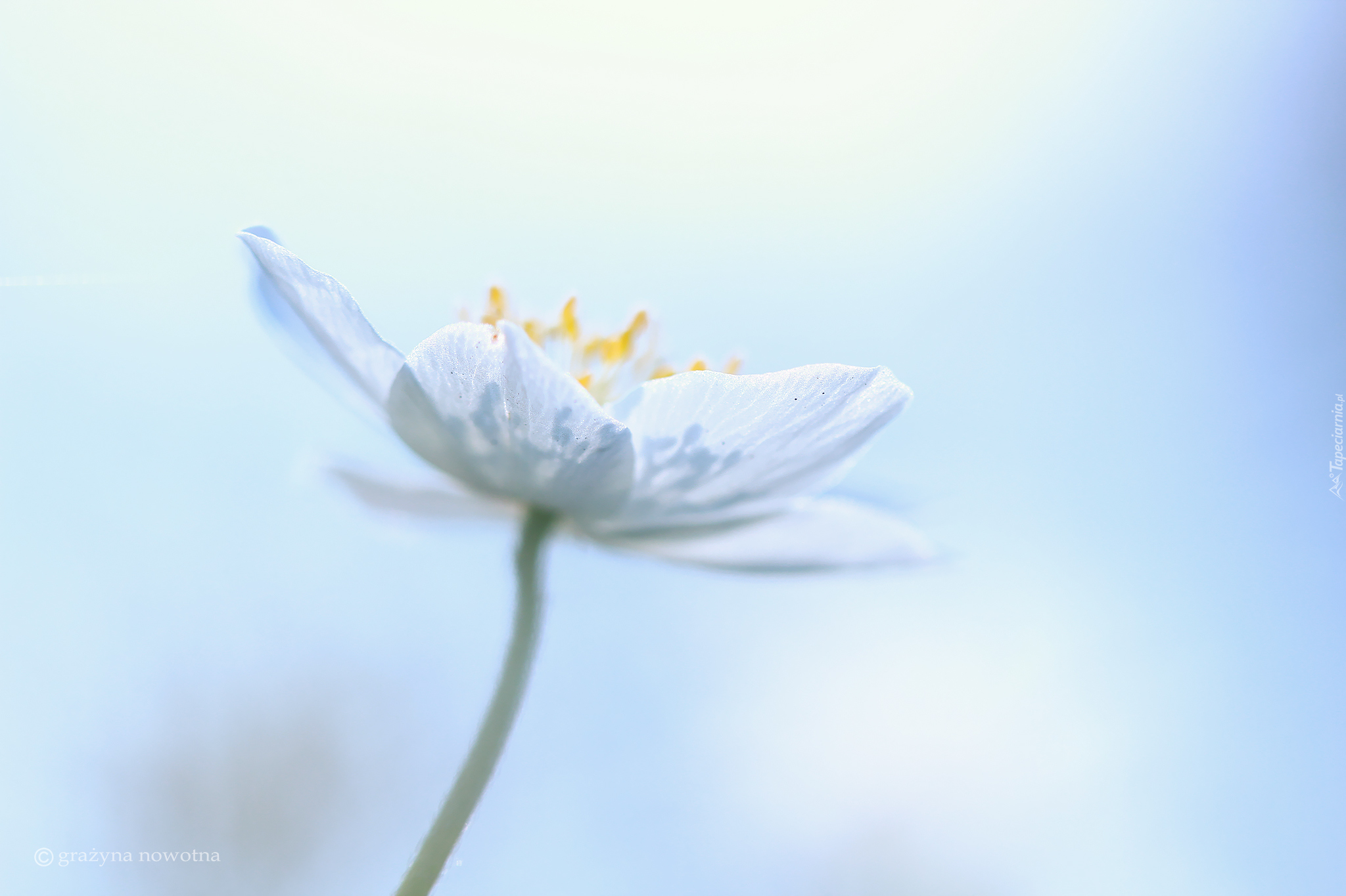 Edytor tapety: Biały zawilec na błękitnym tle
