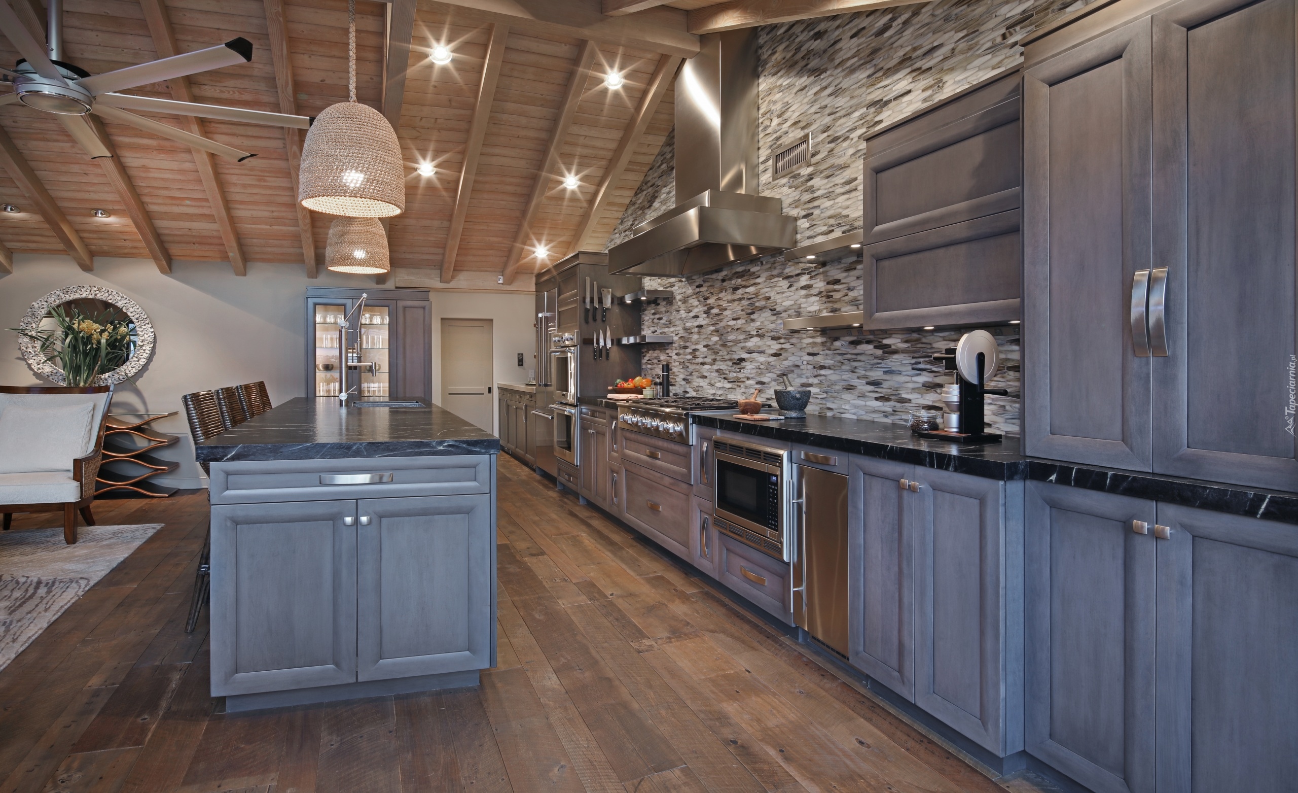 Edytor tapety: Wnętrze umeblowanej kuchni z blatem pośrodku