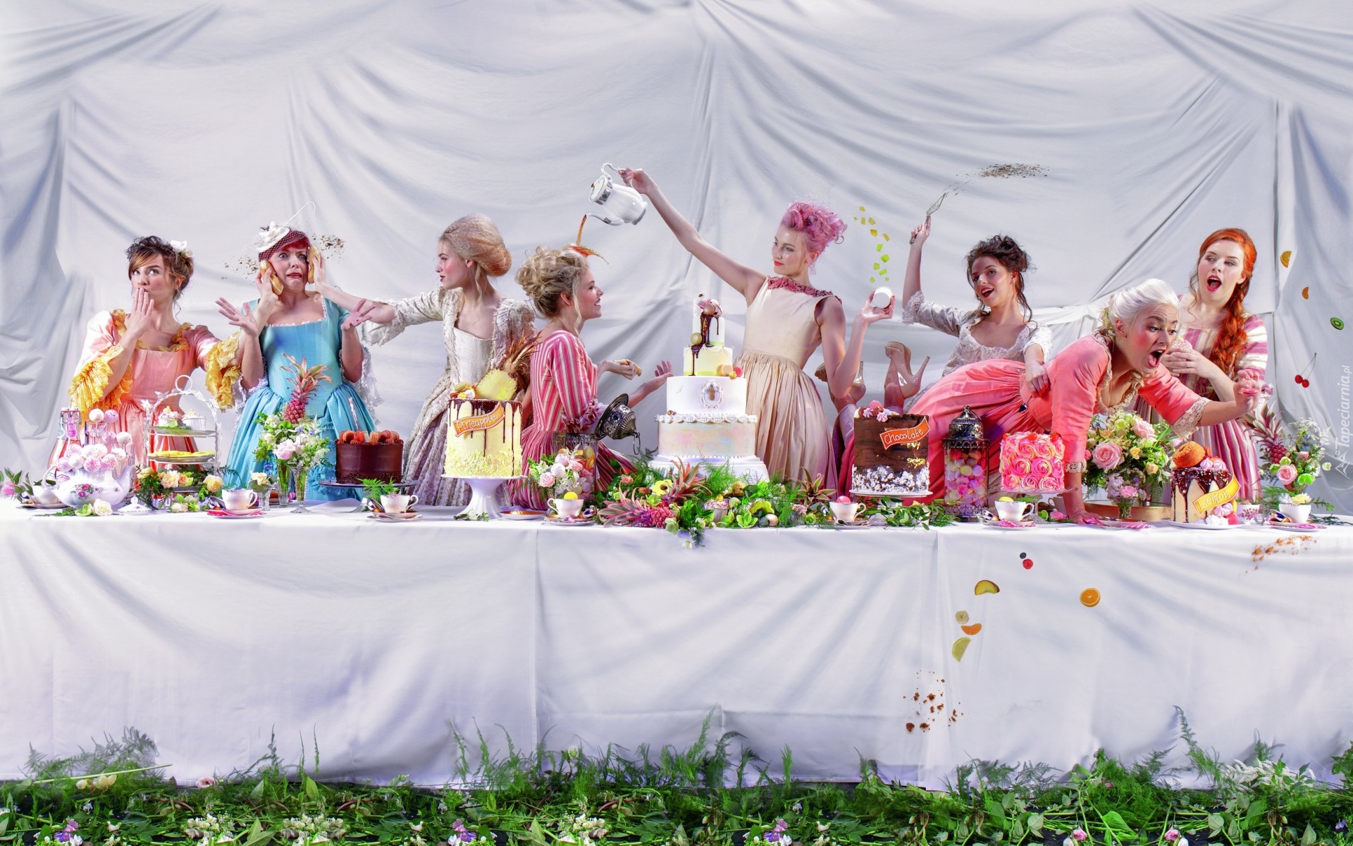 Edytor tapety: Kobiety przy stole podczas uczty na wesoło