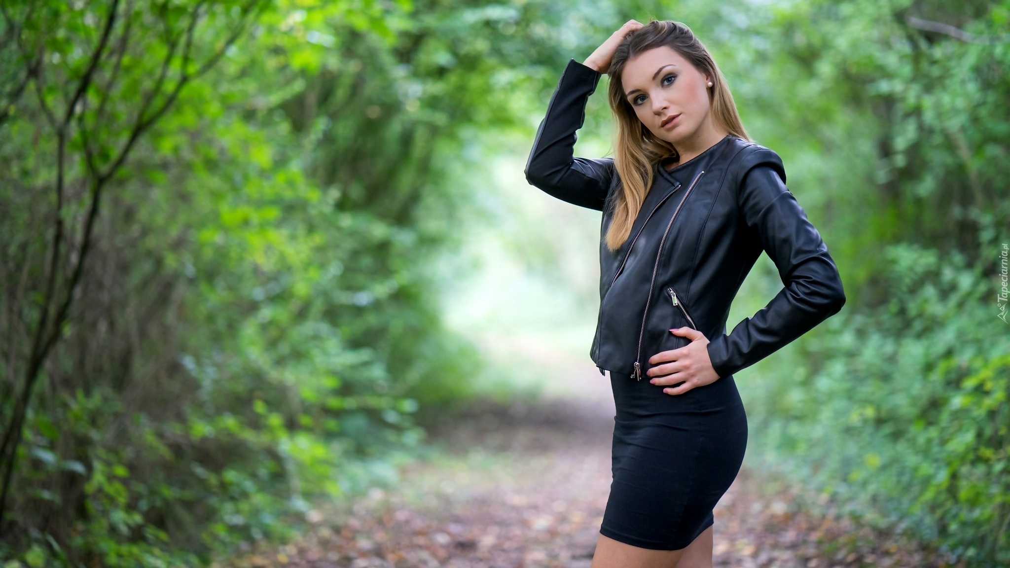 Edytor tapety: Kobieta w czarnej skórzanej kurtce