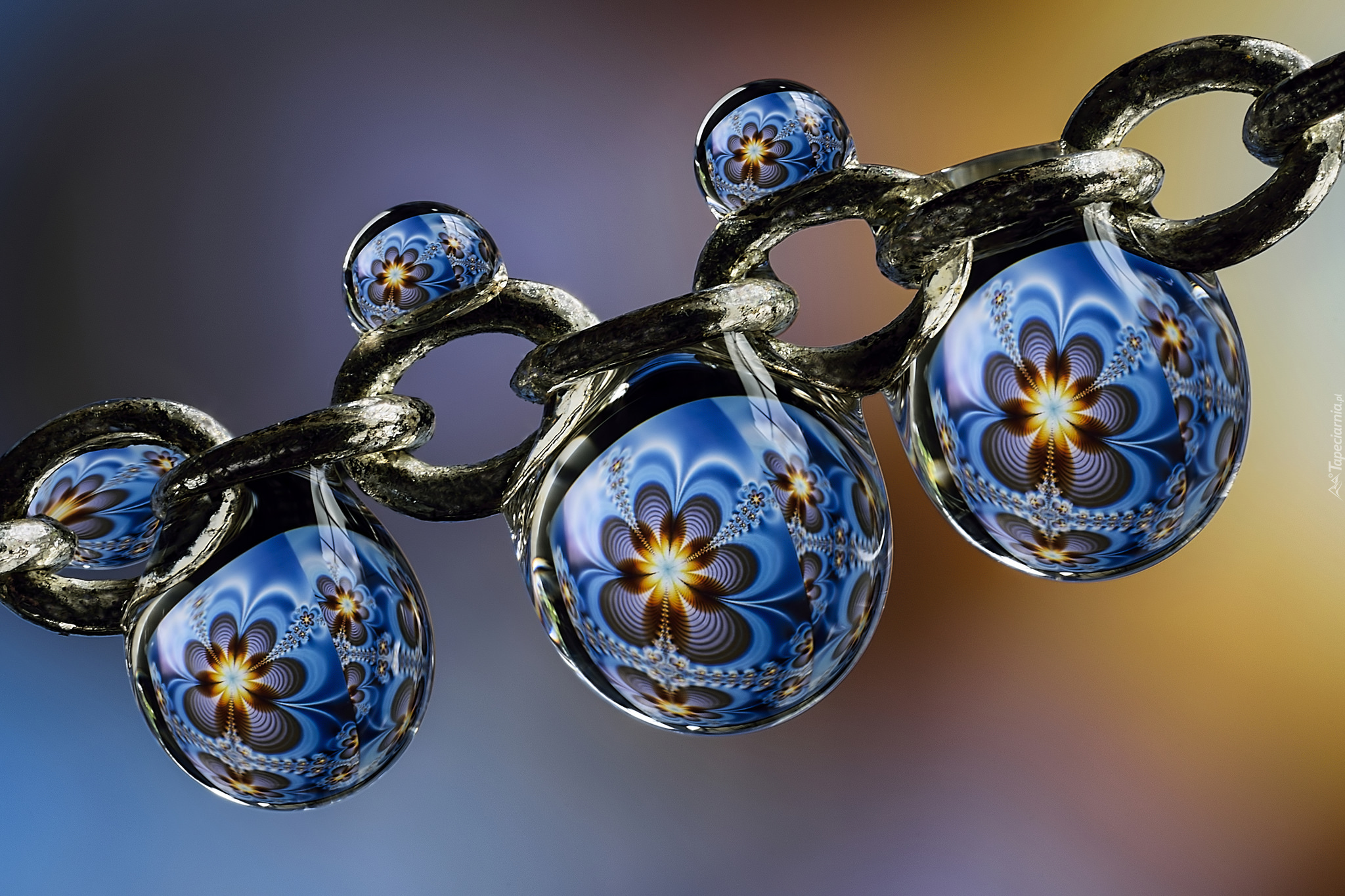 Edytor tapety: Łańcuch z abstrakcyjnymi kwiatami w kroplach wody