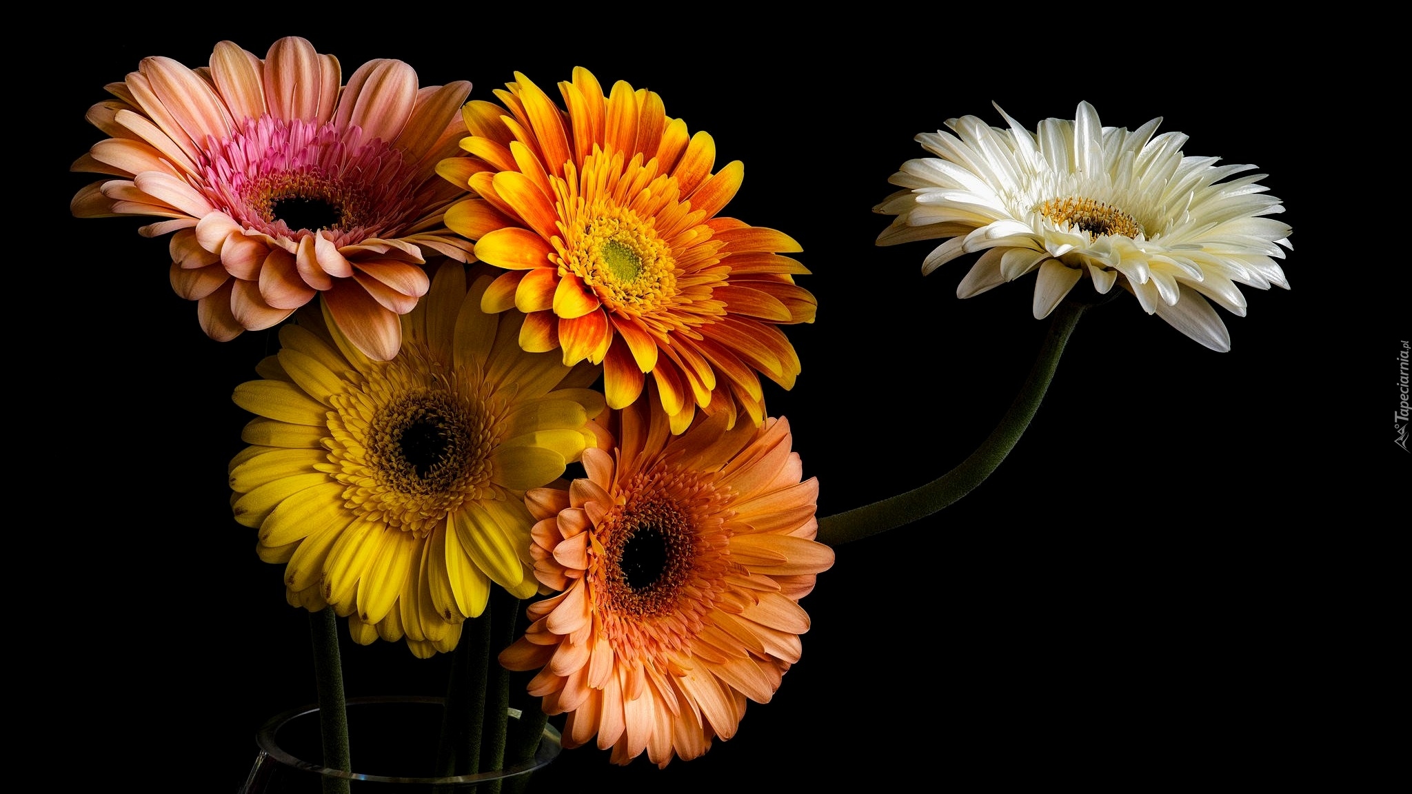 Edytor tapety: Kolorowe gerbery w wazonie na czarnym tle