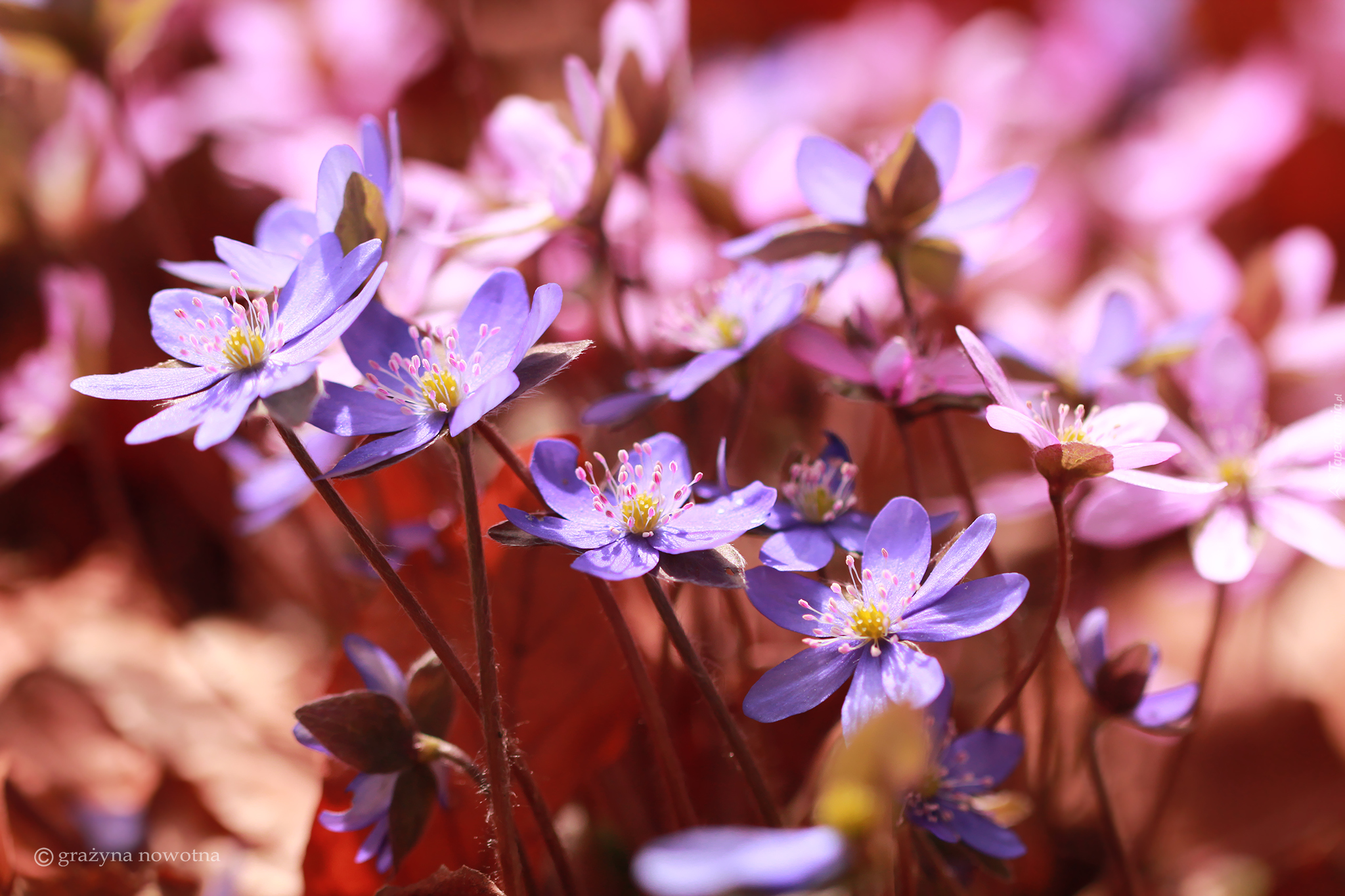 Edytor tapety: Liliowe przylaszczki otulone słońcem