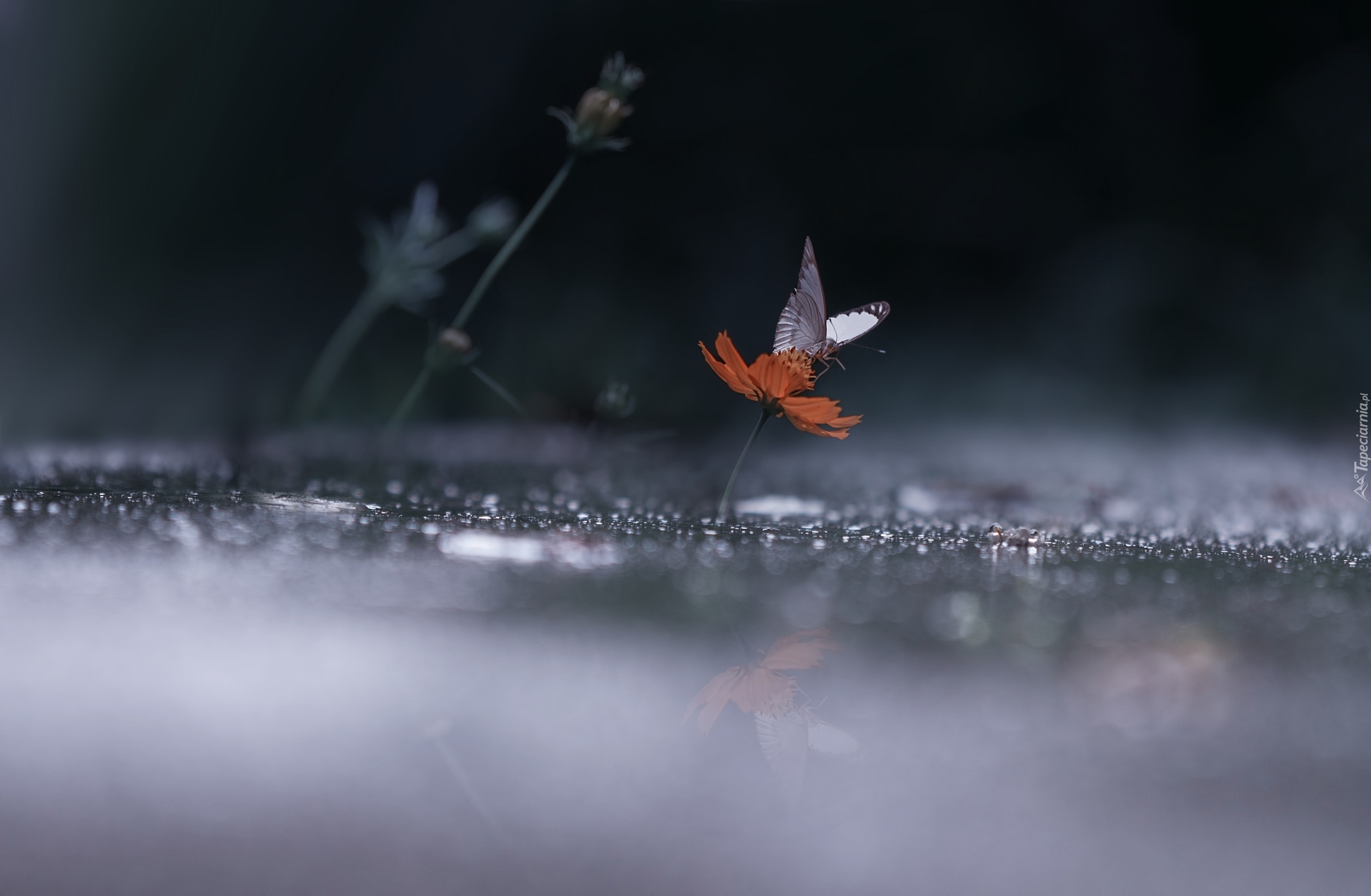Edytor tapety: Biały motyl na kwiatku