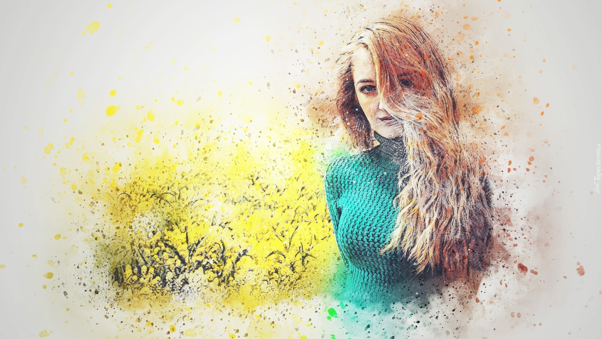 Edytor tapety: Kobieta z długimi włosami w grafice paintography
