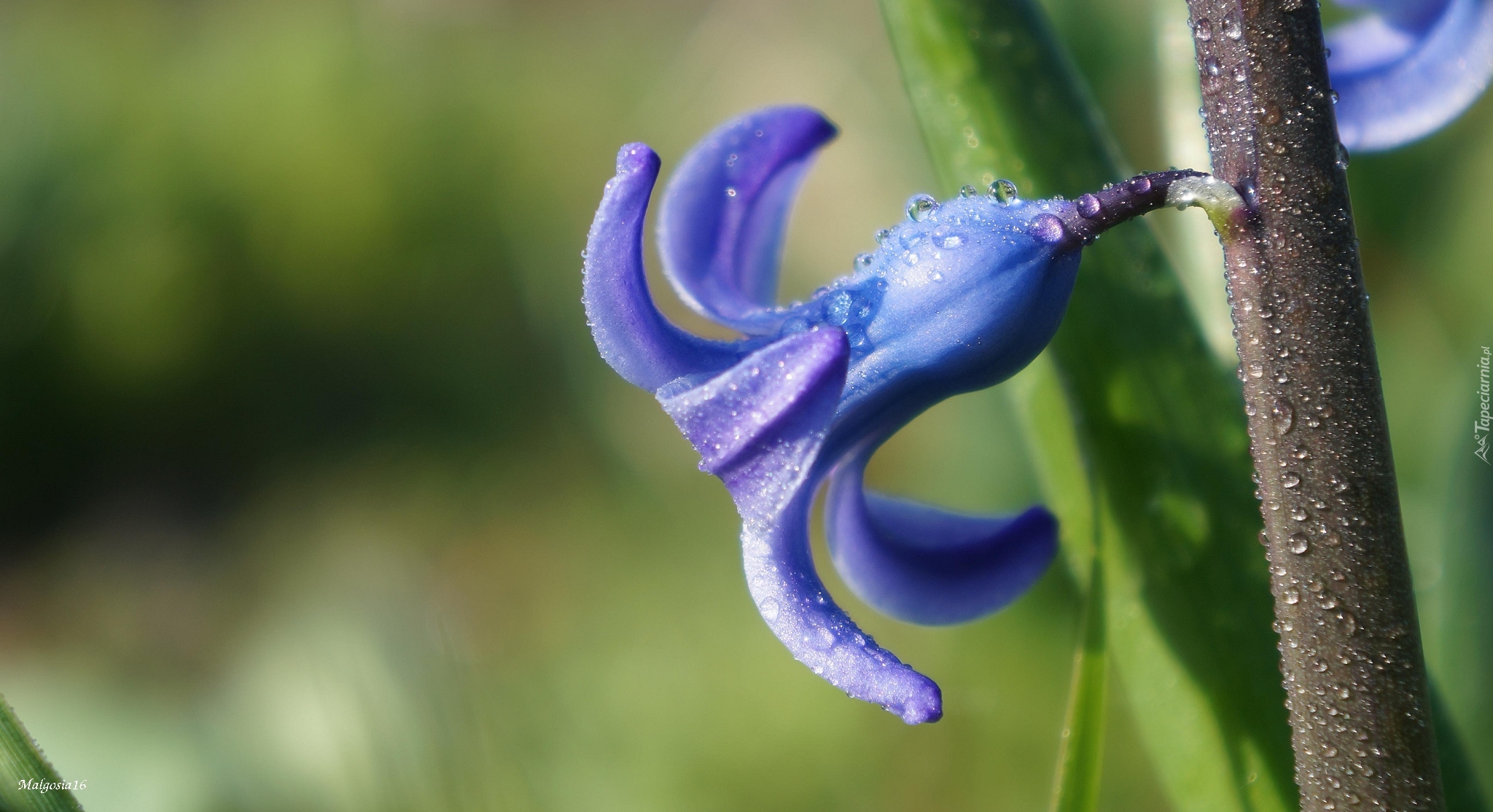 Edytor tapety: Niebieski hiacynt w kroplach porannej rosy