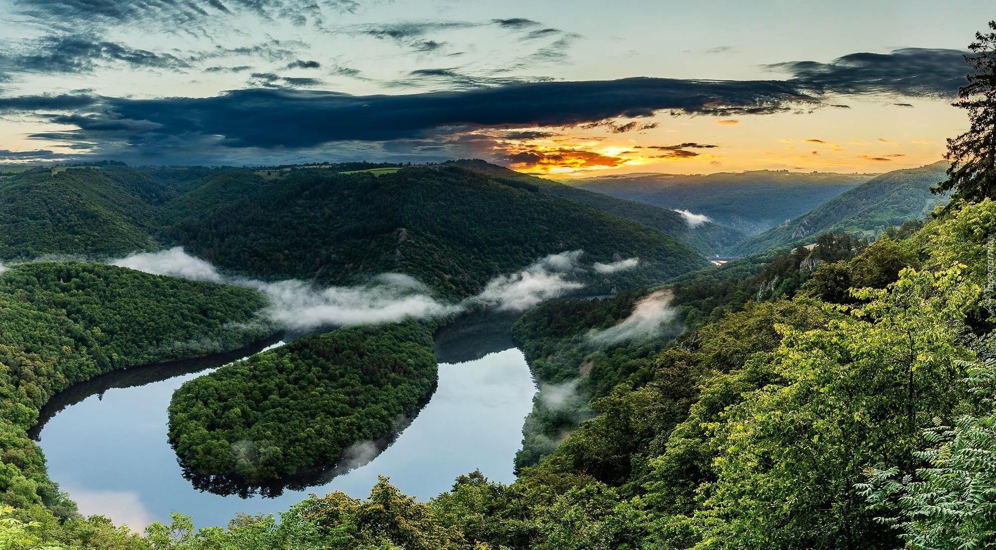 Edytor tapety: Zakole rzeki Sioule we Francji otoczone lasami