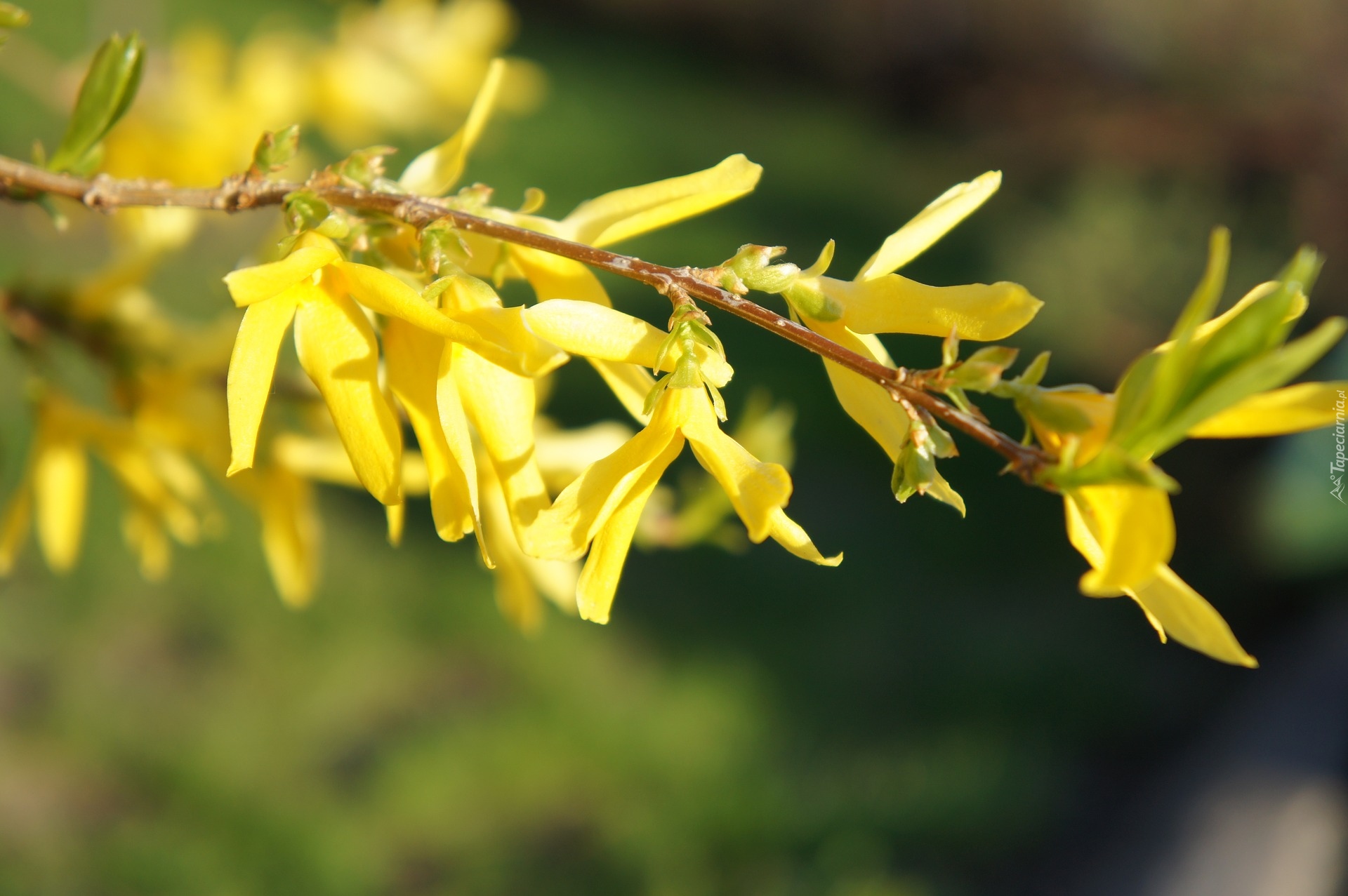 Edytor tapety: Gałązka forsycji na rozmytym tle