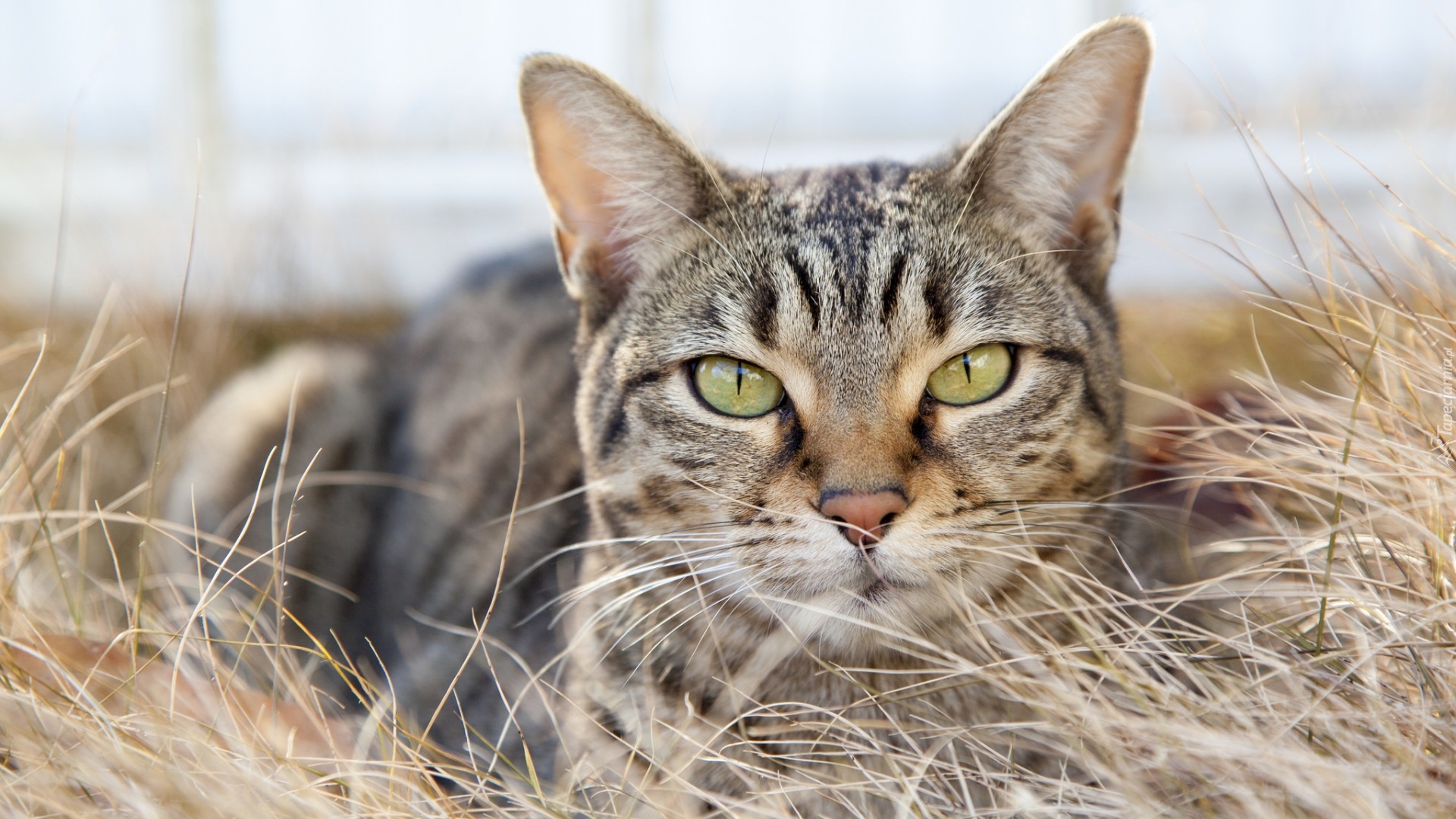Edytor tapety: Bury kot w suchej trawie