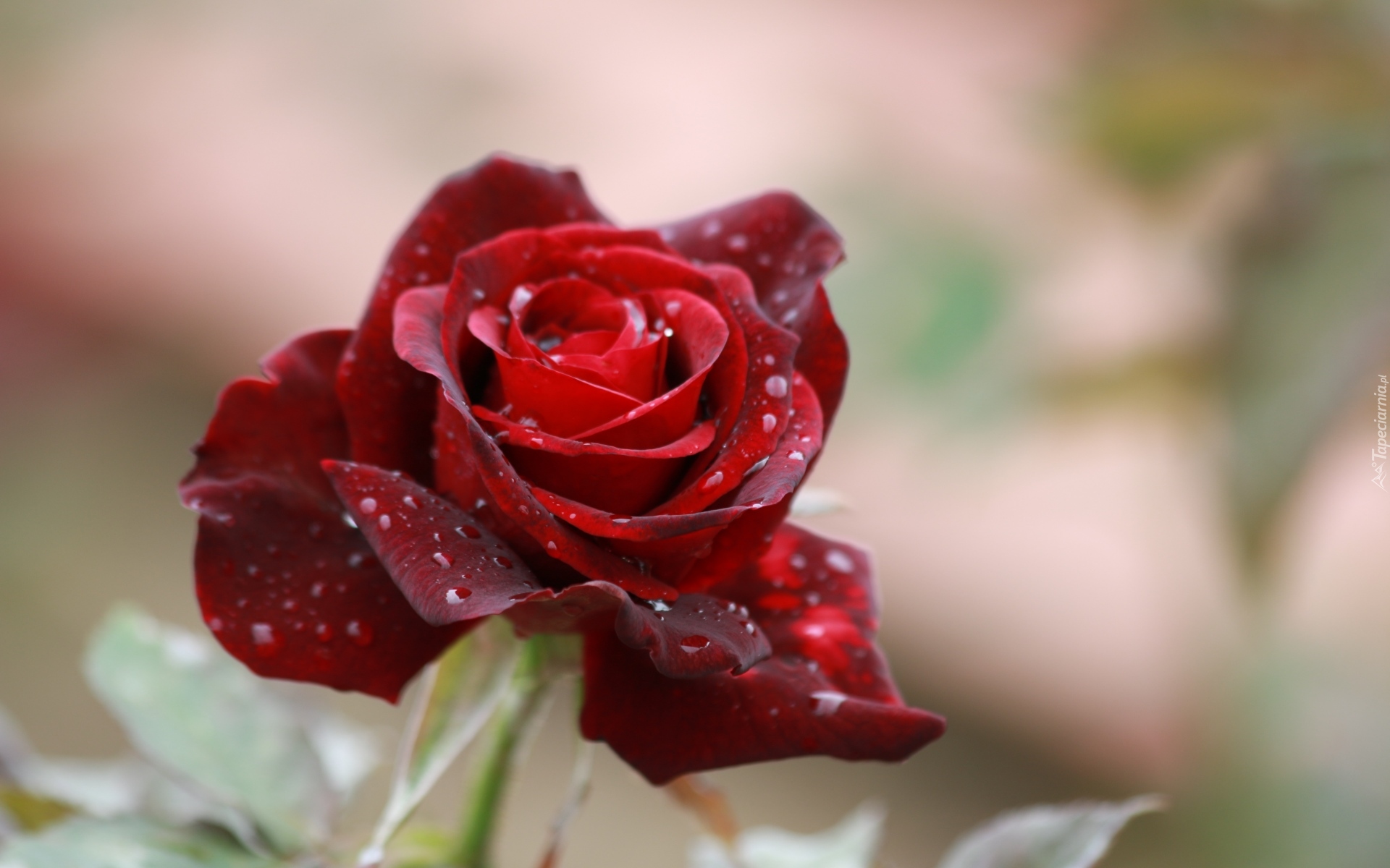 Edytor tapety: Krople wody na płatkach czerwonej róży
