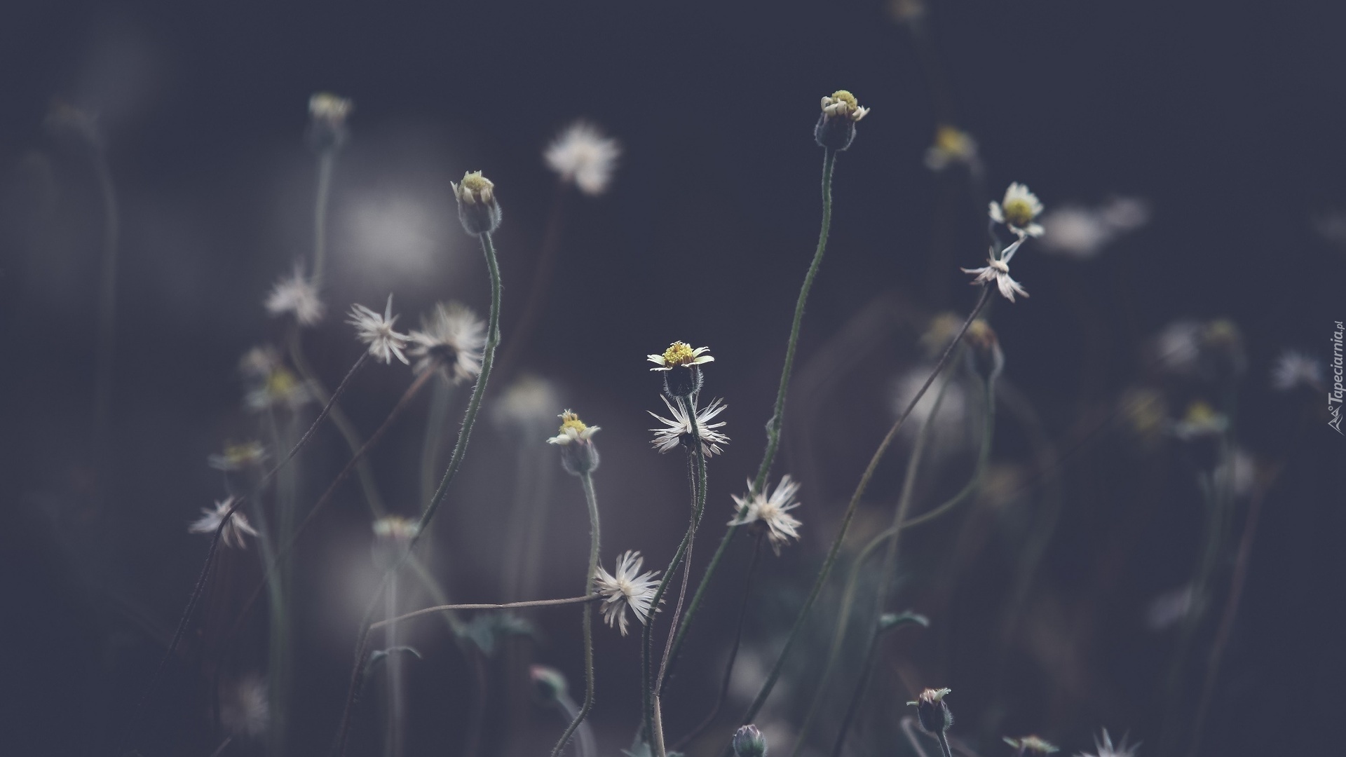 Edytor tapety: Drobne polne kwiaty na rozmytym tle