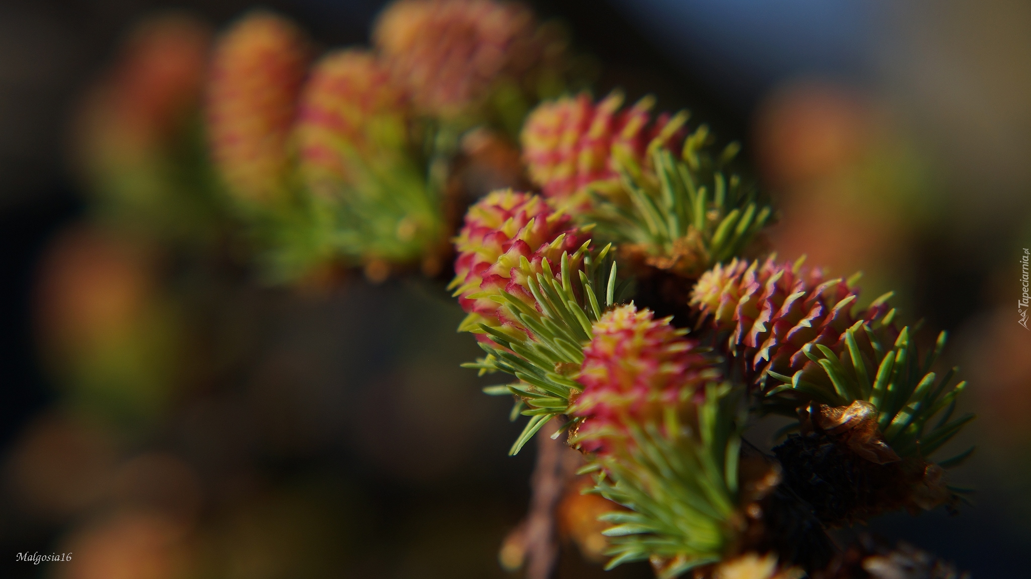 Edytor tapety: Gałązka z wiosennymi szyszkami modrzewia