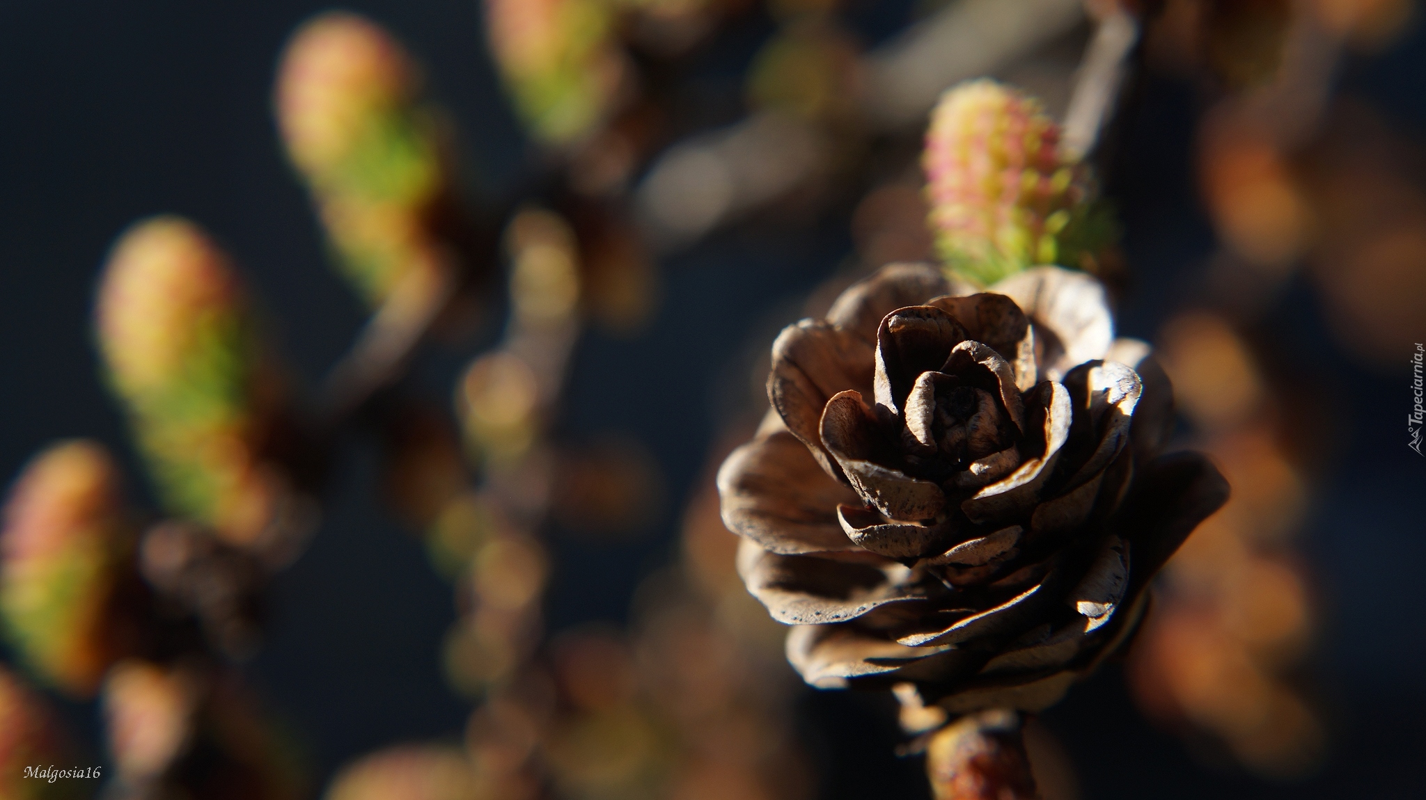 Edytor tapety: Modrzewiowa szyszka na rozmytym tle