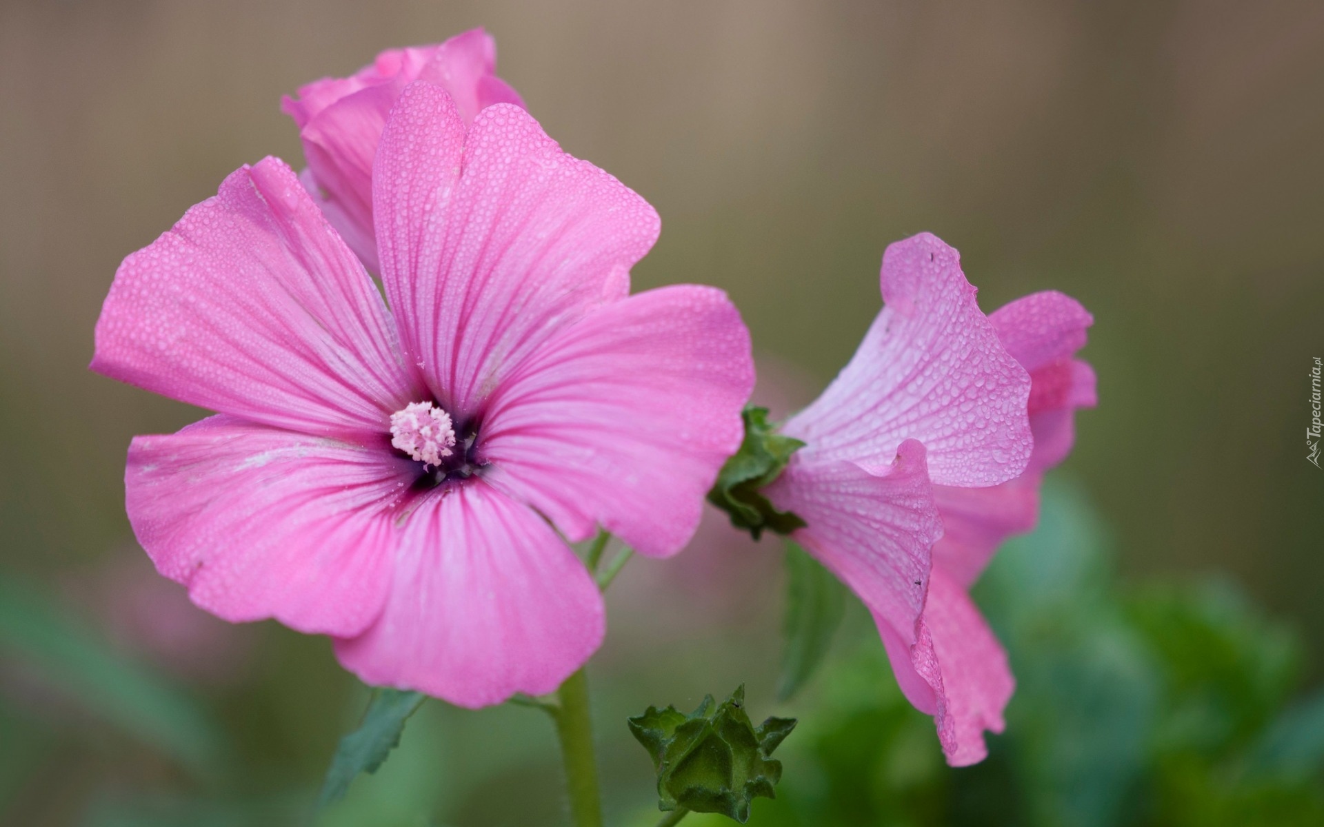 Edytor tapety: Różowe kwiaty ślazówki letniej