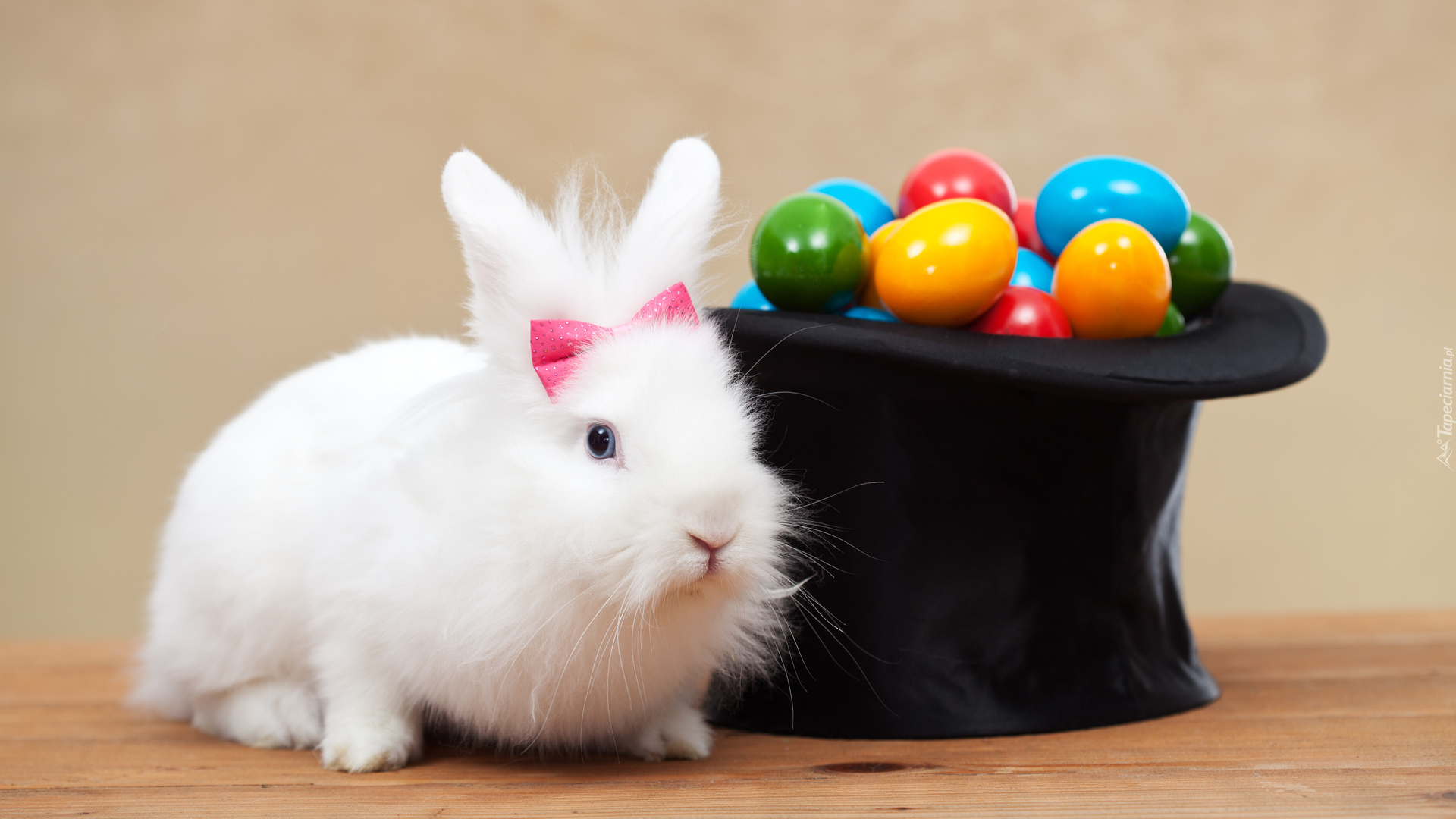 Edytor tapety: Kapelusz z pisankami i biały krolik