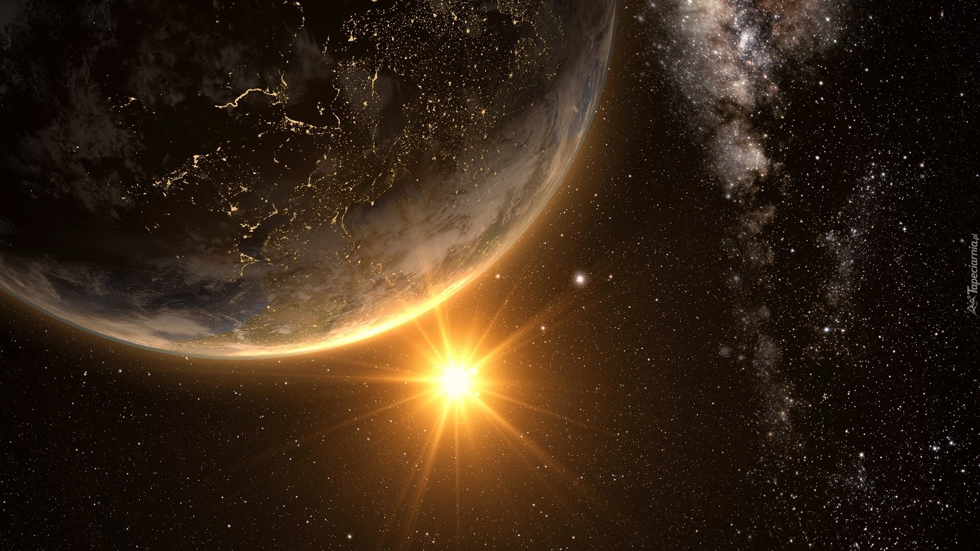 Edytor tapety: Planeta Ziemia w kosmosie oświetlona słońcem