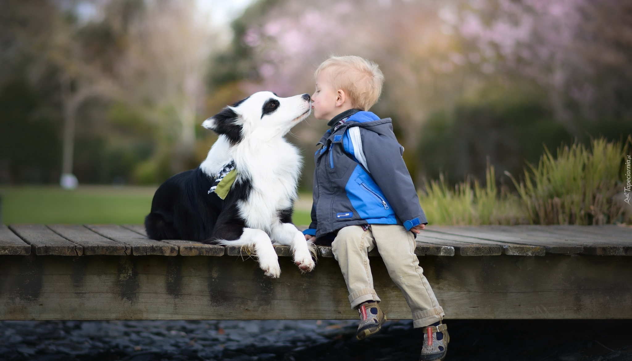 Edytor tapety: Chłopiec i border collie wymieniają buziaki