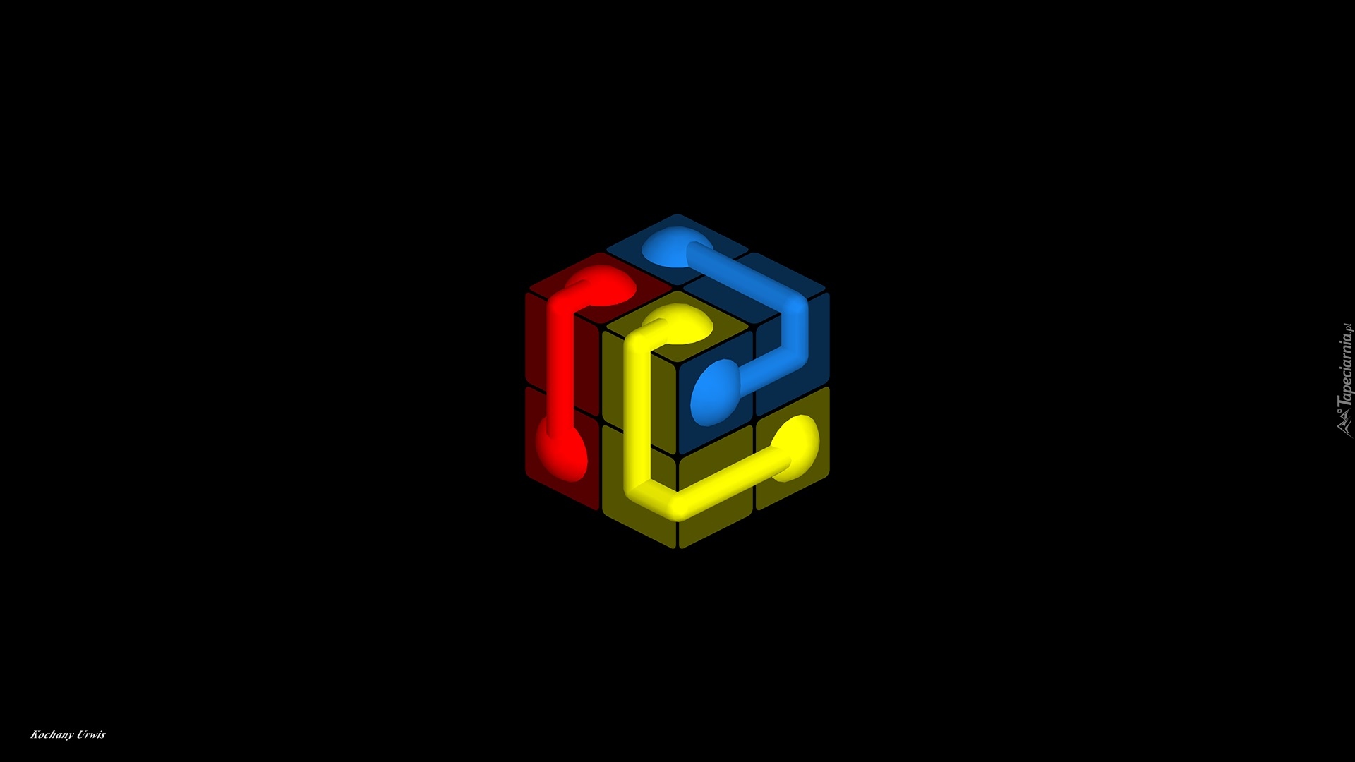 Edytor tapety: Trójkolorowa kostka na czarnym tle w grafice 3D