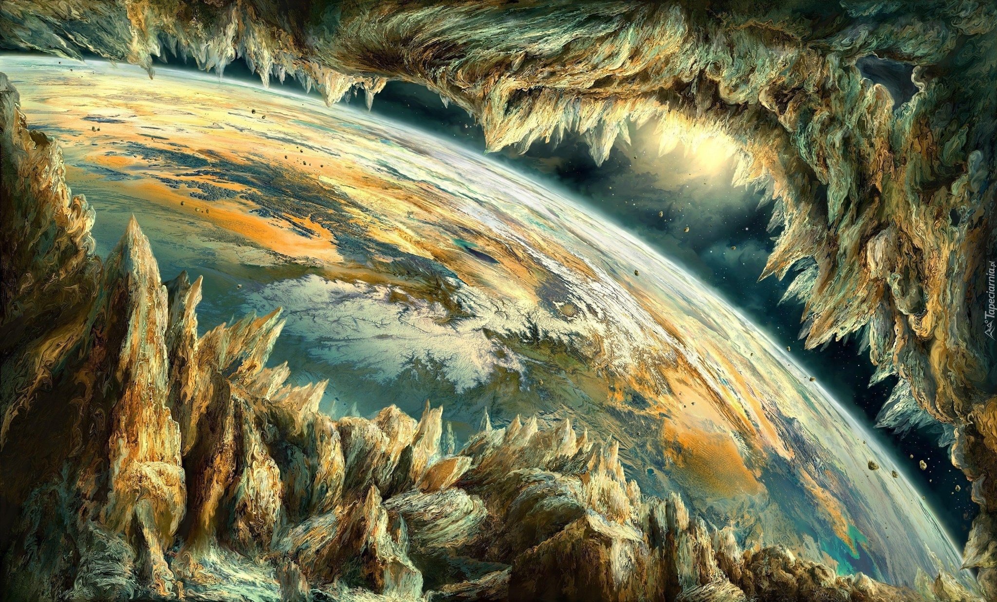 Edytor tapety: Planeta i skały w grafice 3D