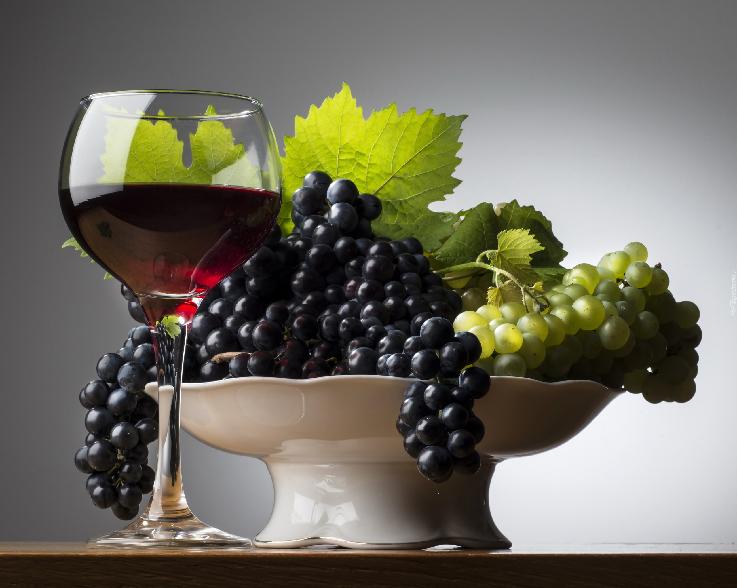 Edytor tapety: Winogrona na paterze obok kieliszka wina