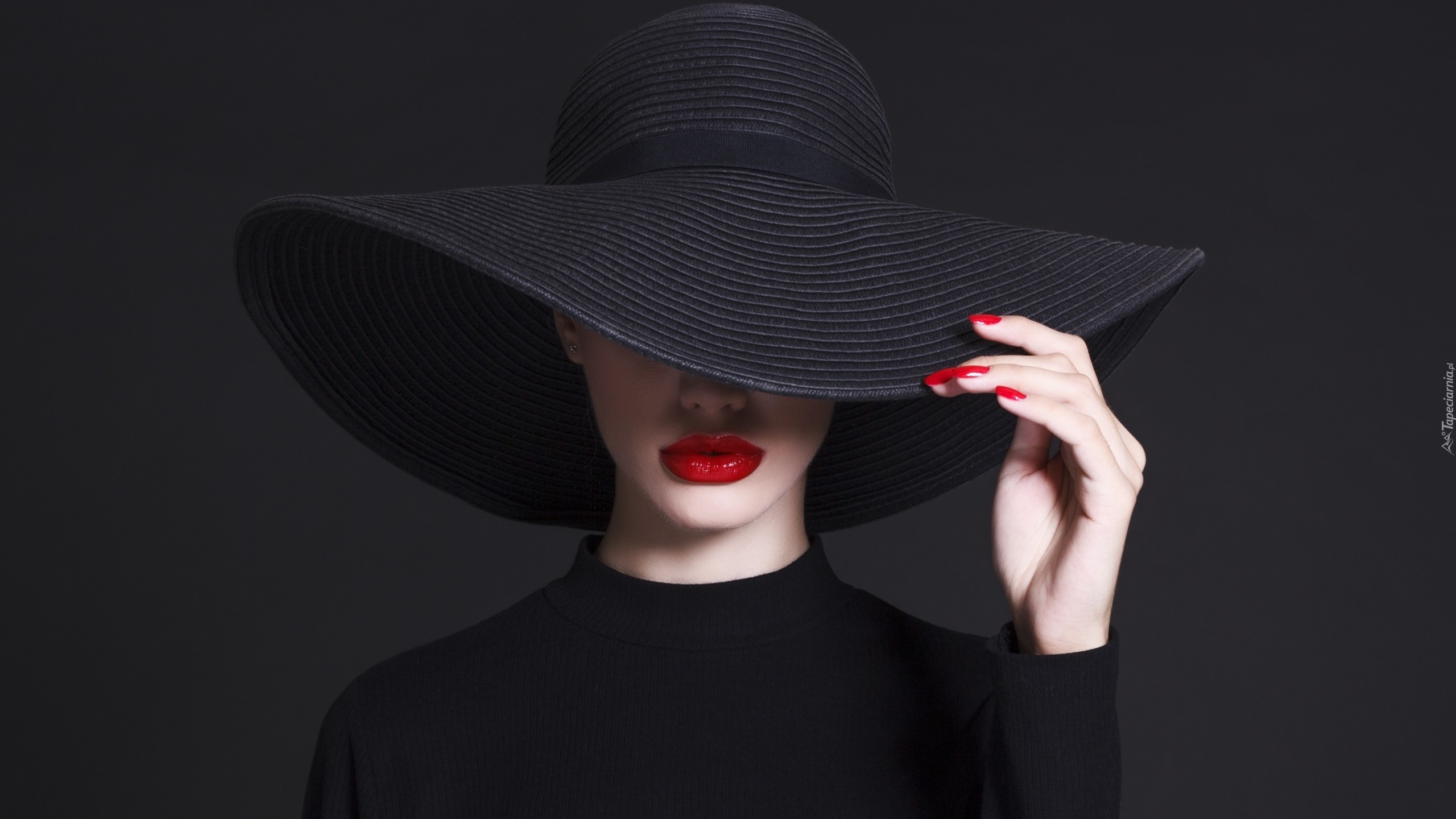 Edytor tapety: Kobieta w czarnym kapeluszu zasłaniającym twarz
