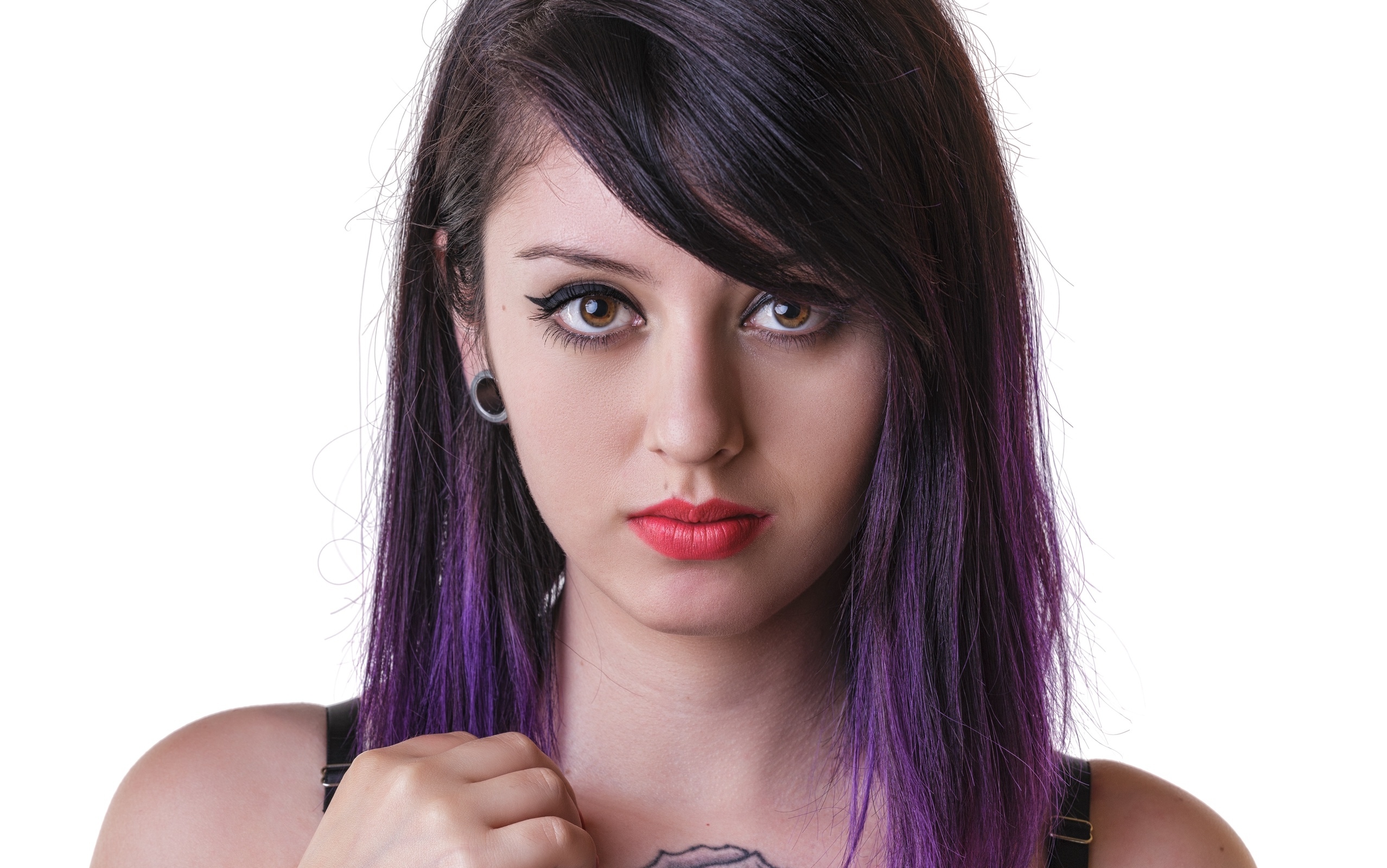 Edytor tapety: Kobieta o fioletowych włosach i w makijażu