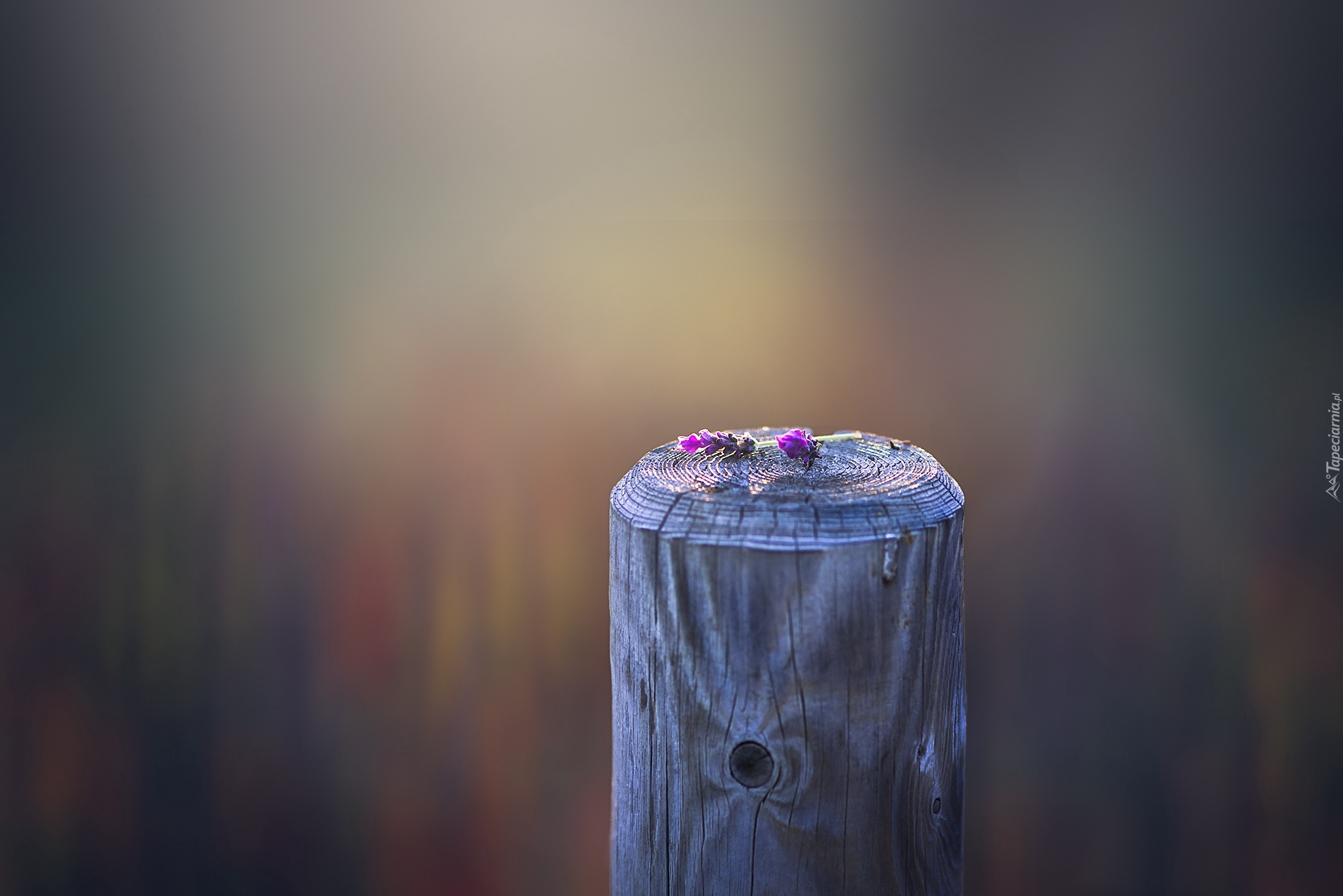 Edytor tapety: Kwiat lawendy na drewnianym słupku