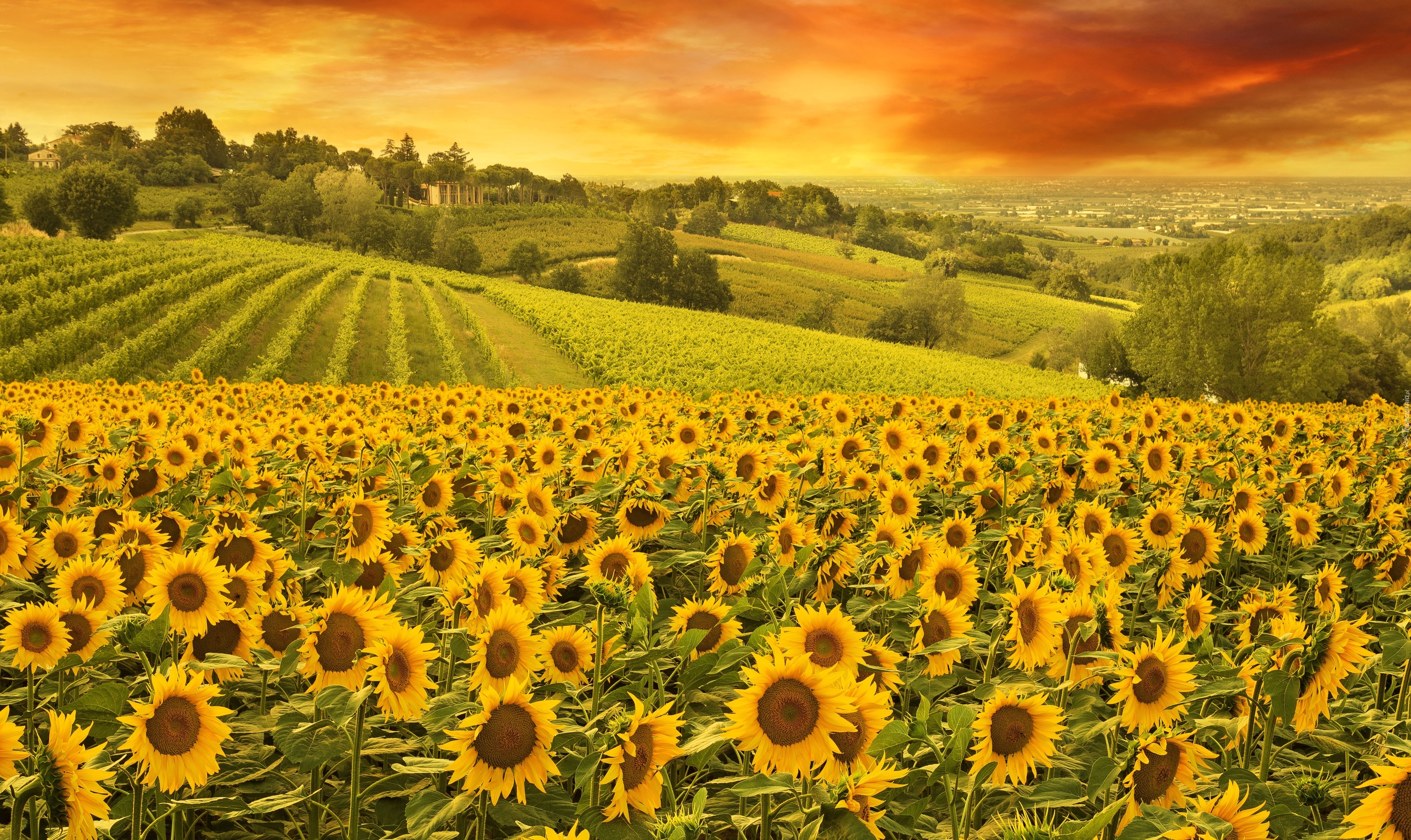 Edytor tapety: Pole słoneczników w słonecznej Toskanii